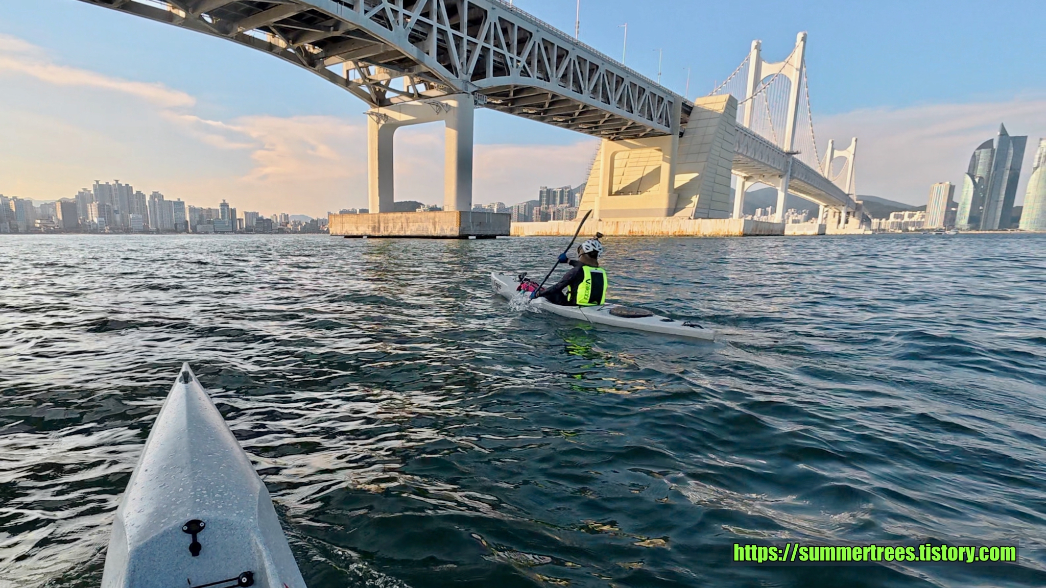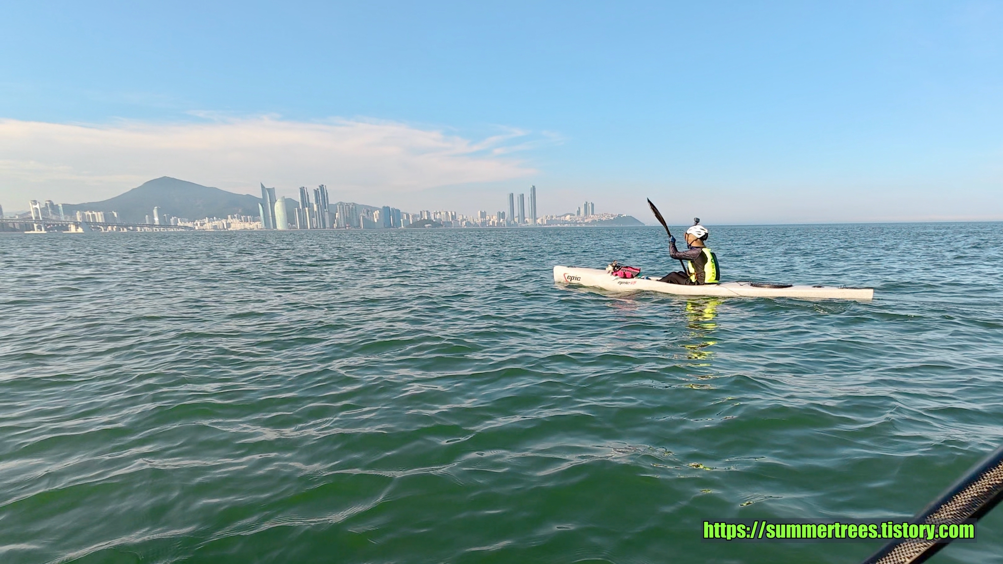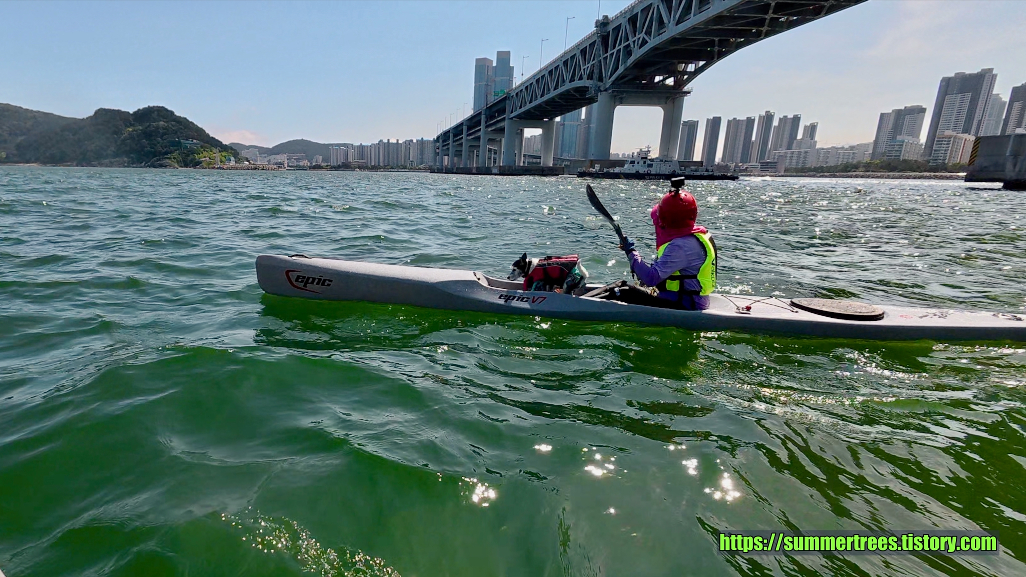 오륙도 가는 길은 역풍에 역조류. 대교에서부터 오륙도 앞까지는 스포츠 모드다. 주변에 속도를 계량할 수 있는 대상이 없어서 아무리 저어도 앞을 나가지 않는 듯 느껴진다. 역풍 때문에 더 힘들게 느껴진다.