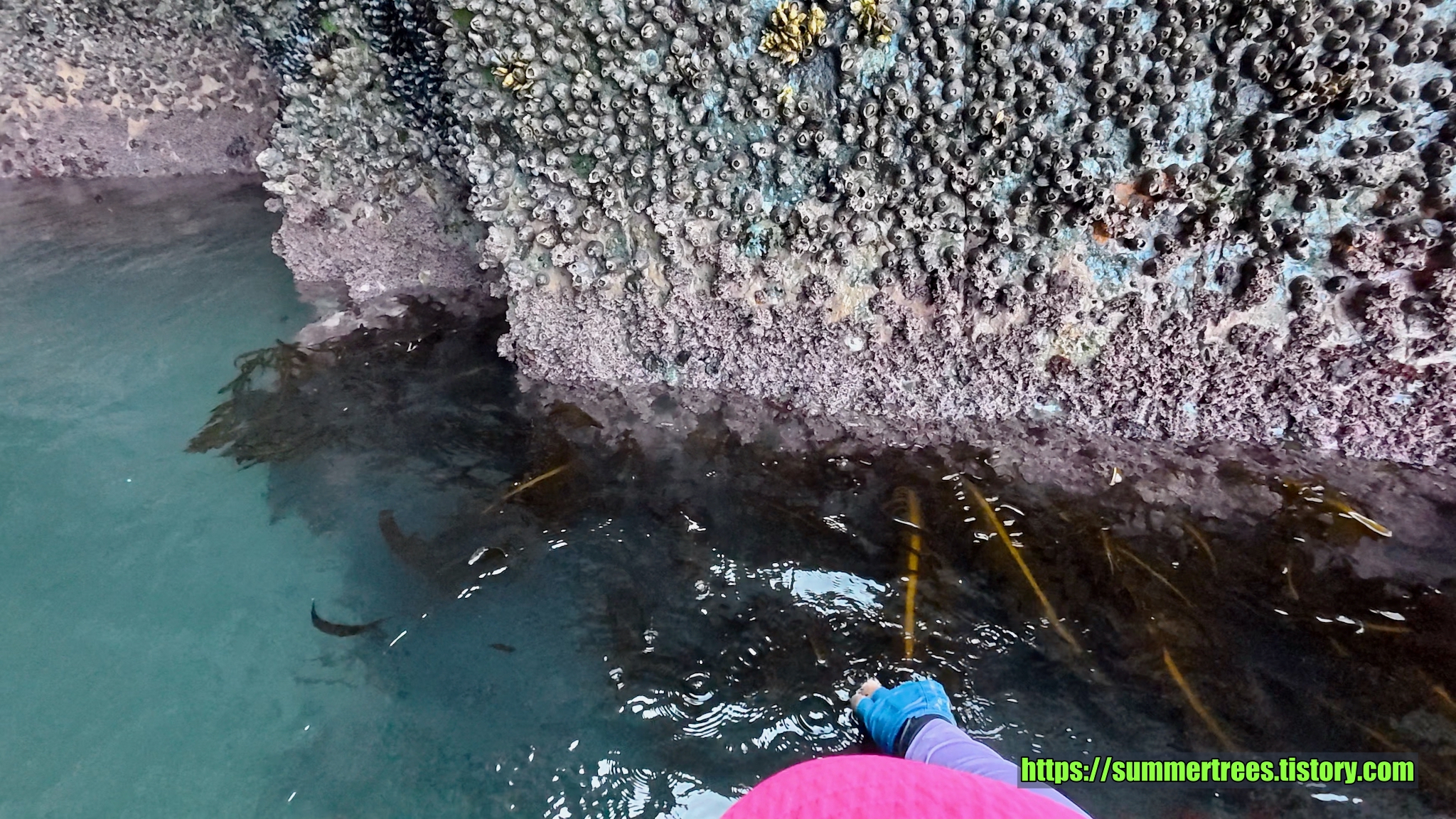 여기 미역이 무성하게 자라고 있어 마님이 많이 따왔다.