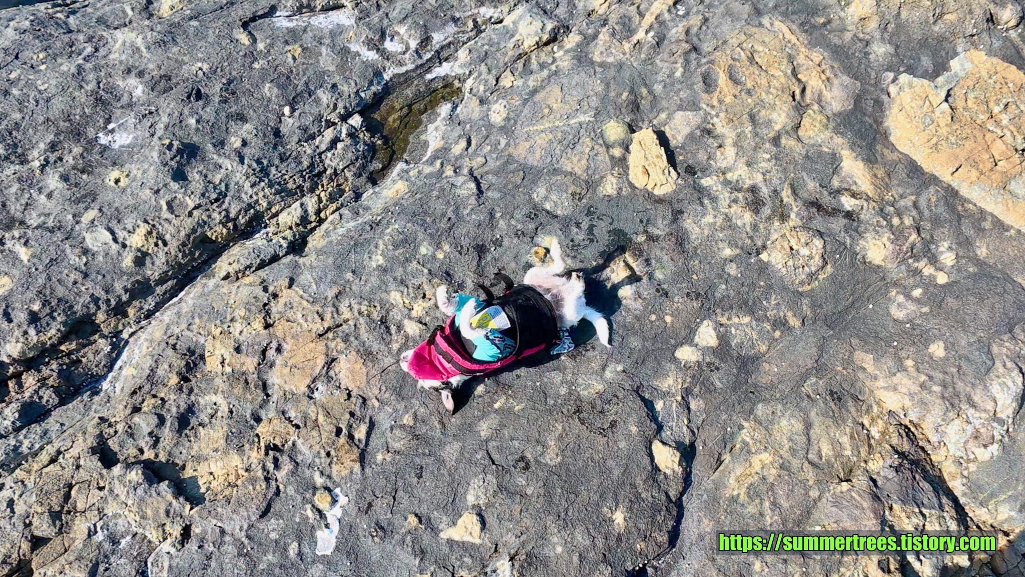 가는 길 중간 즈음에 다른 곳과 다른 방향과 모양의 특이한 파도대가 있다. 바다지형이 특이한 곳인가보다.