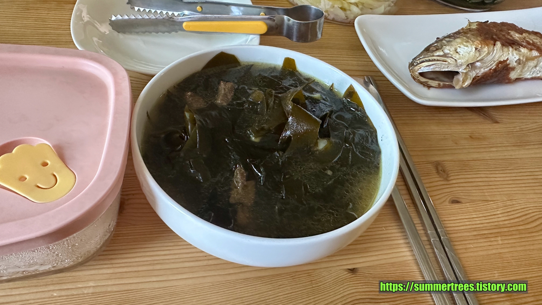 다음날 아침에는 마님이 딴 미역으로 미역국과 미역나물을 먹었다.