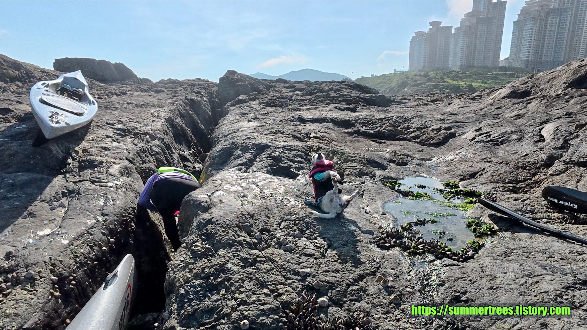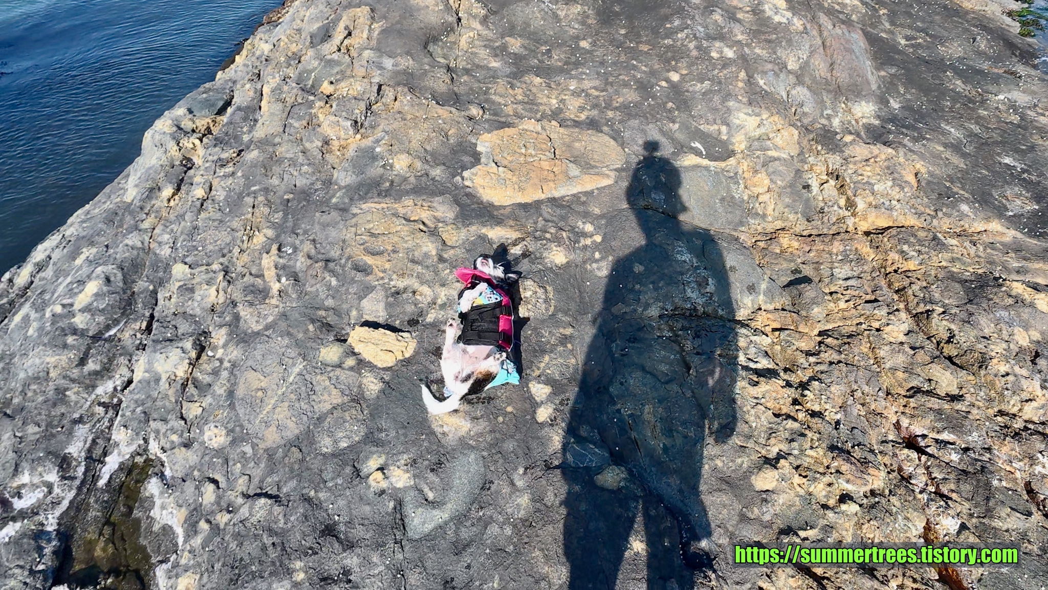 등대섬을 찍는 순간 마야가 물에 빠졌다. 첫 입수. 빠지자말자 나한테로 오지 않고 마님에게 도망가버렸다.