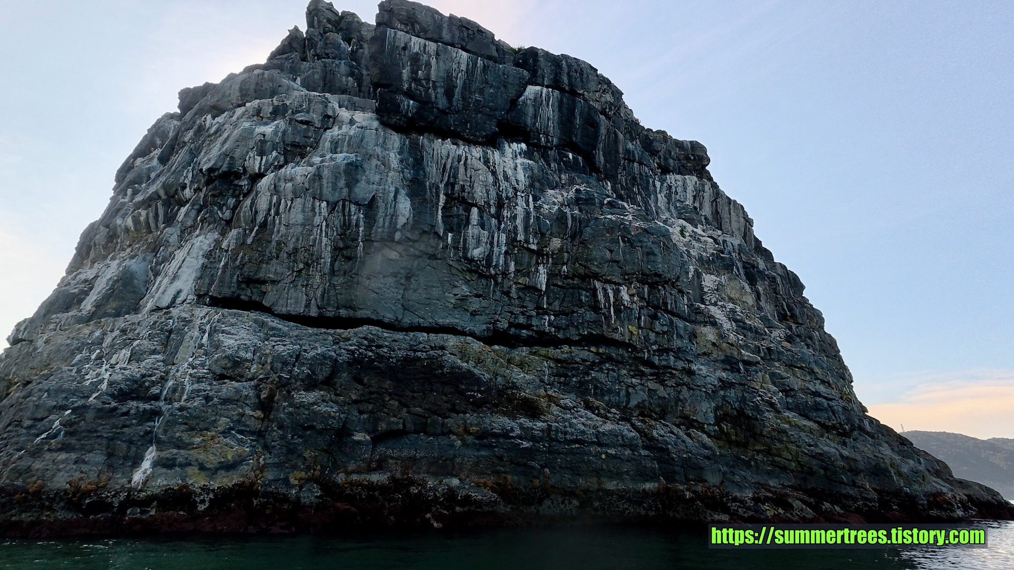 송곳섬 남안도 굴섬처럼 굴 색깔이다. 특이하게 송곳섬은 입처럼 보이는 틈새가 있다. 마치 웃고 있는 듯 하다.