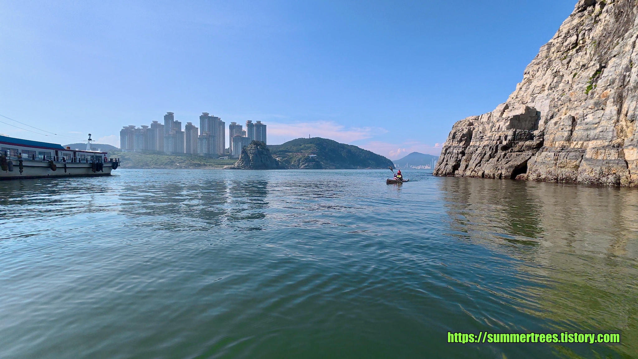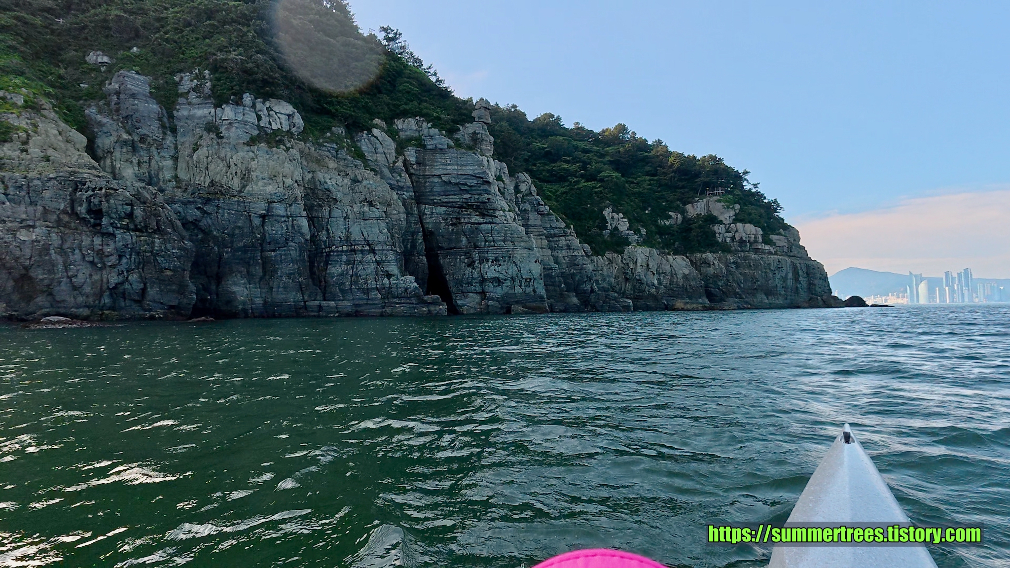 오륙도로 올 때와는 달리 복귀하는 조류는 순조류와 순풍. 빠르게 복귀를 할 수 있었지만, 이기대와 멀어지면서는 역시나 주변 풍경이 변하지 않아 제 자리인 느낌은 같다. 빠르나 느리나 풍경이 변하지 않으면 힘들게 느껴진다.