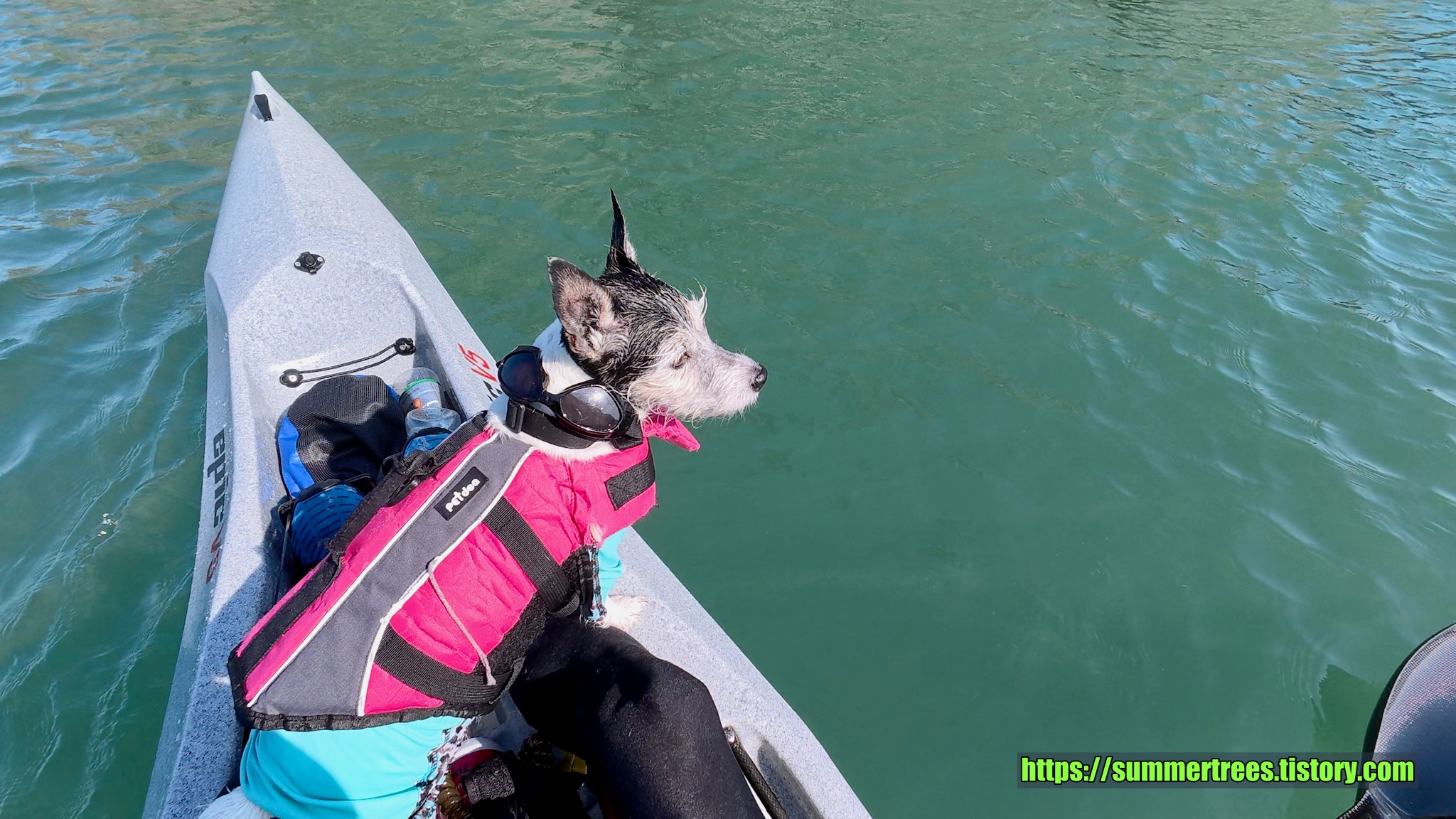 바다 위에서 쉴 때는 마야가 바쁘다. 뒤쪽 짐칸 뚜껑이 고무로 되어있다보니 마야 입장에서는 제일 놀기 좋은 장소다.