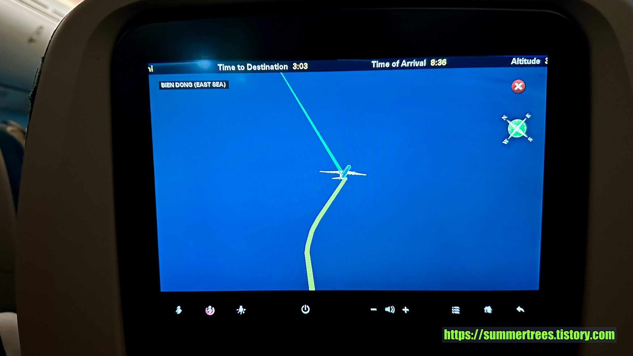 이전 여행에서도 터뷸런스 때문에 힘들었는데 이번에는 번개까지 쳤다. 비행기가 번개를 피해 도망가는 모습이 화면에 보였다. 비행기 타는 게 점점 무서워진다.