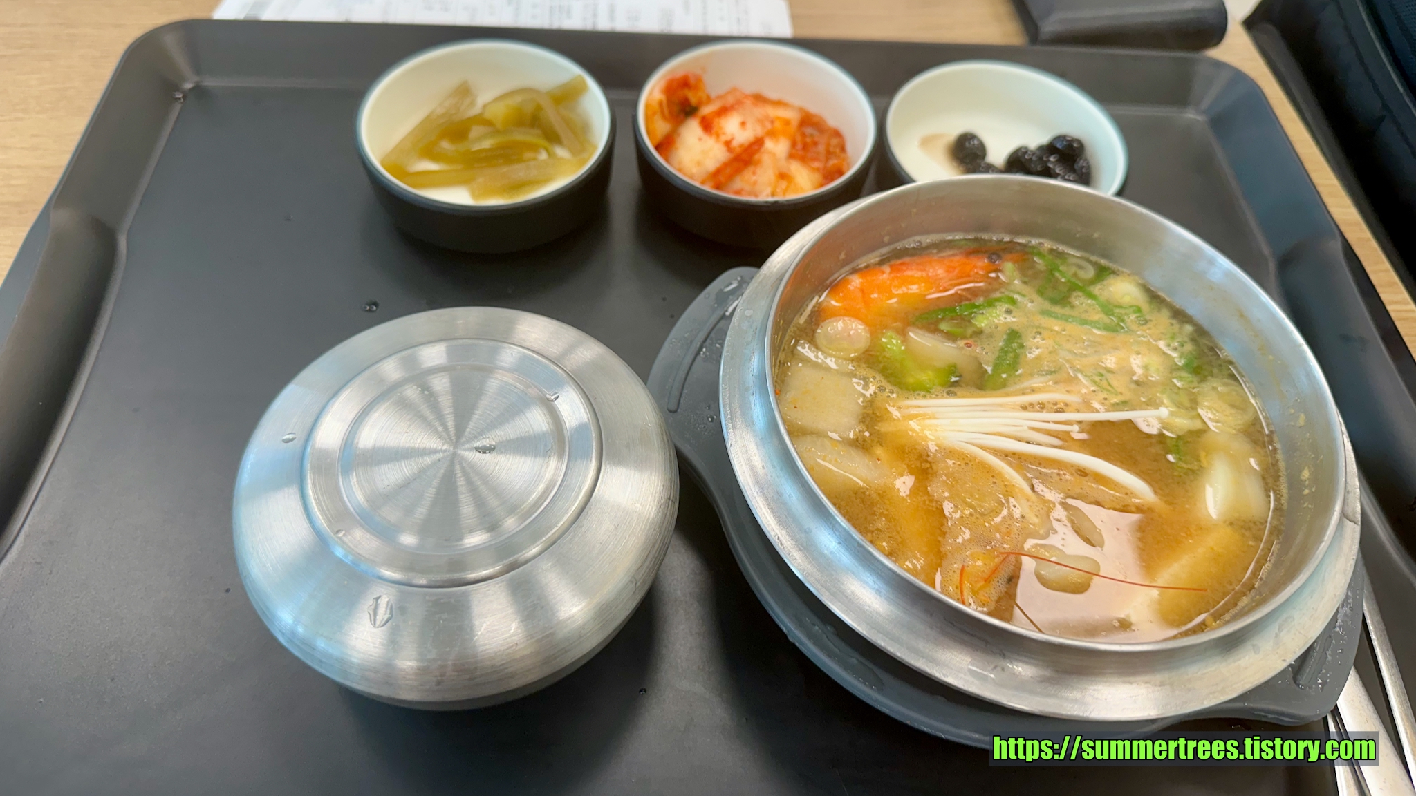 아침으로 된장찌개를 먹고 귀가.
