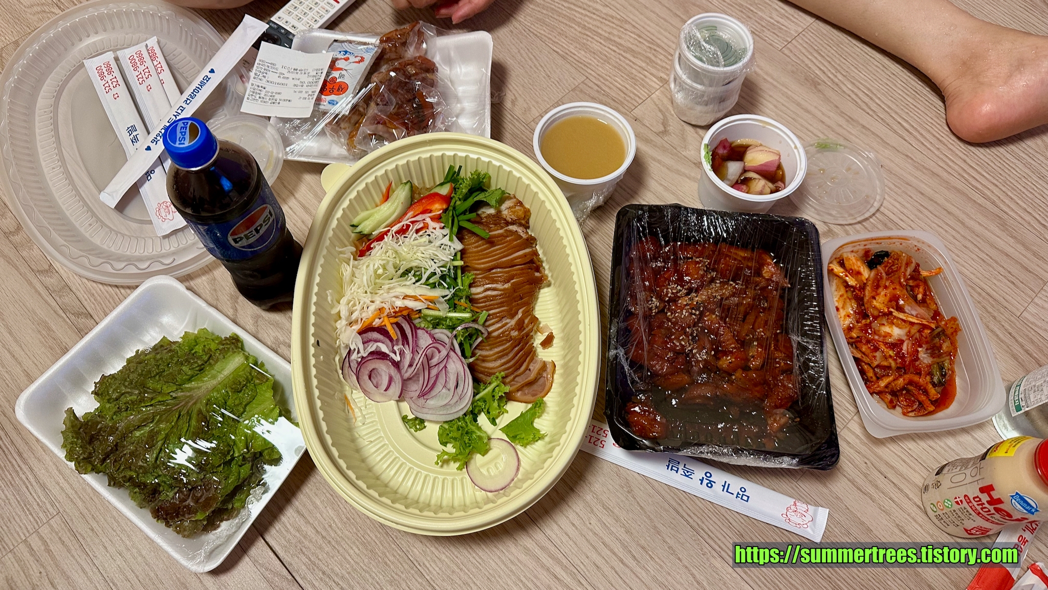 우리는 반반족발로 매운족발과 냉채족발을 포장했는데, 먹을 만 했다.