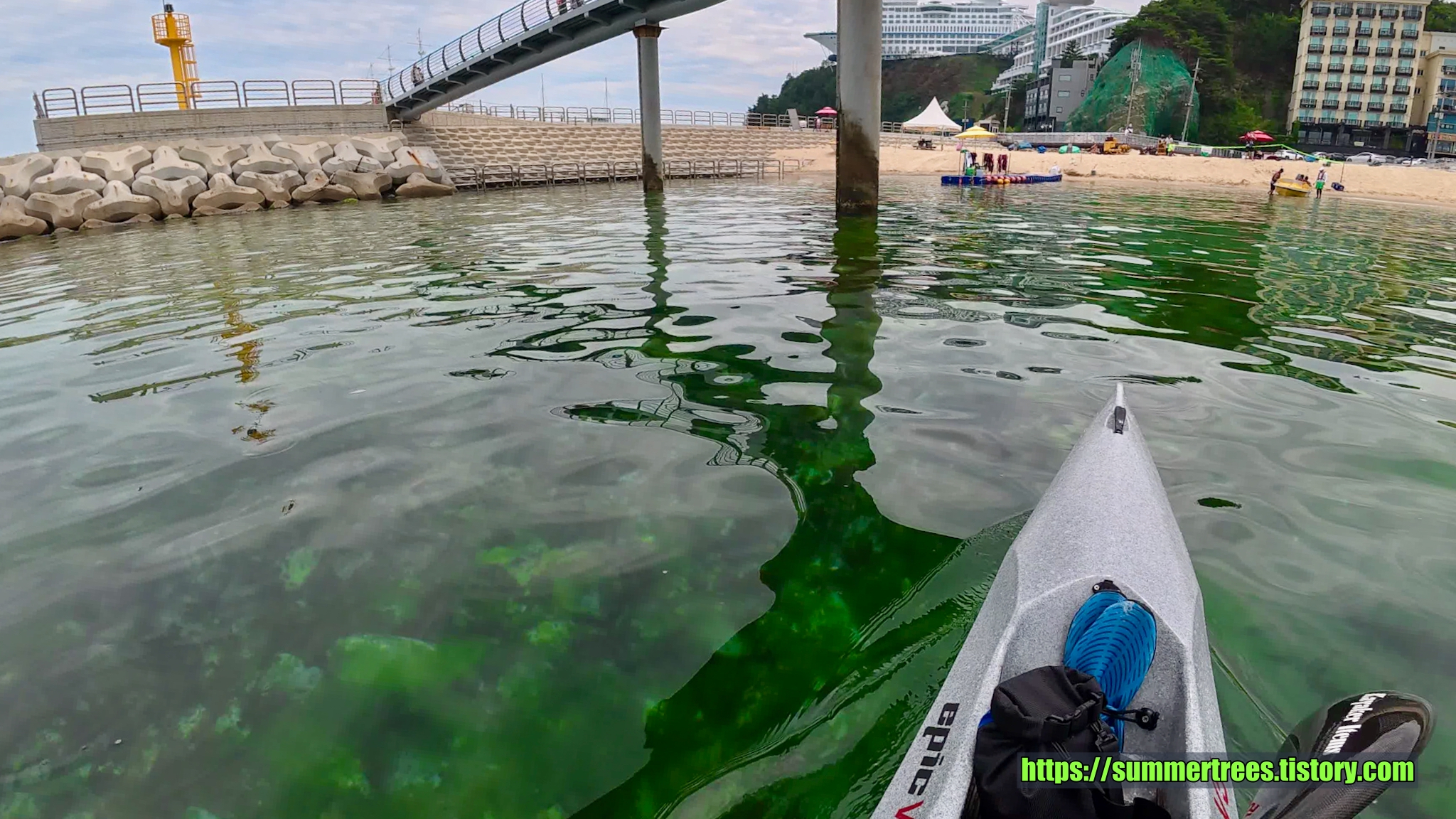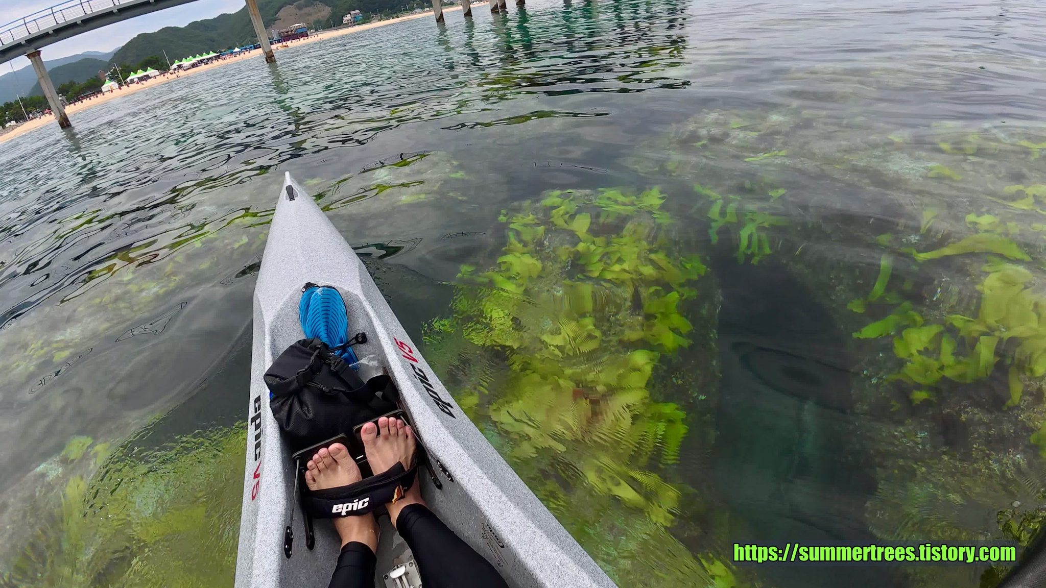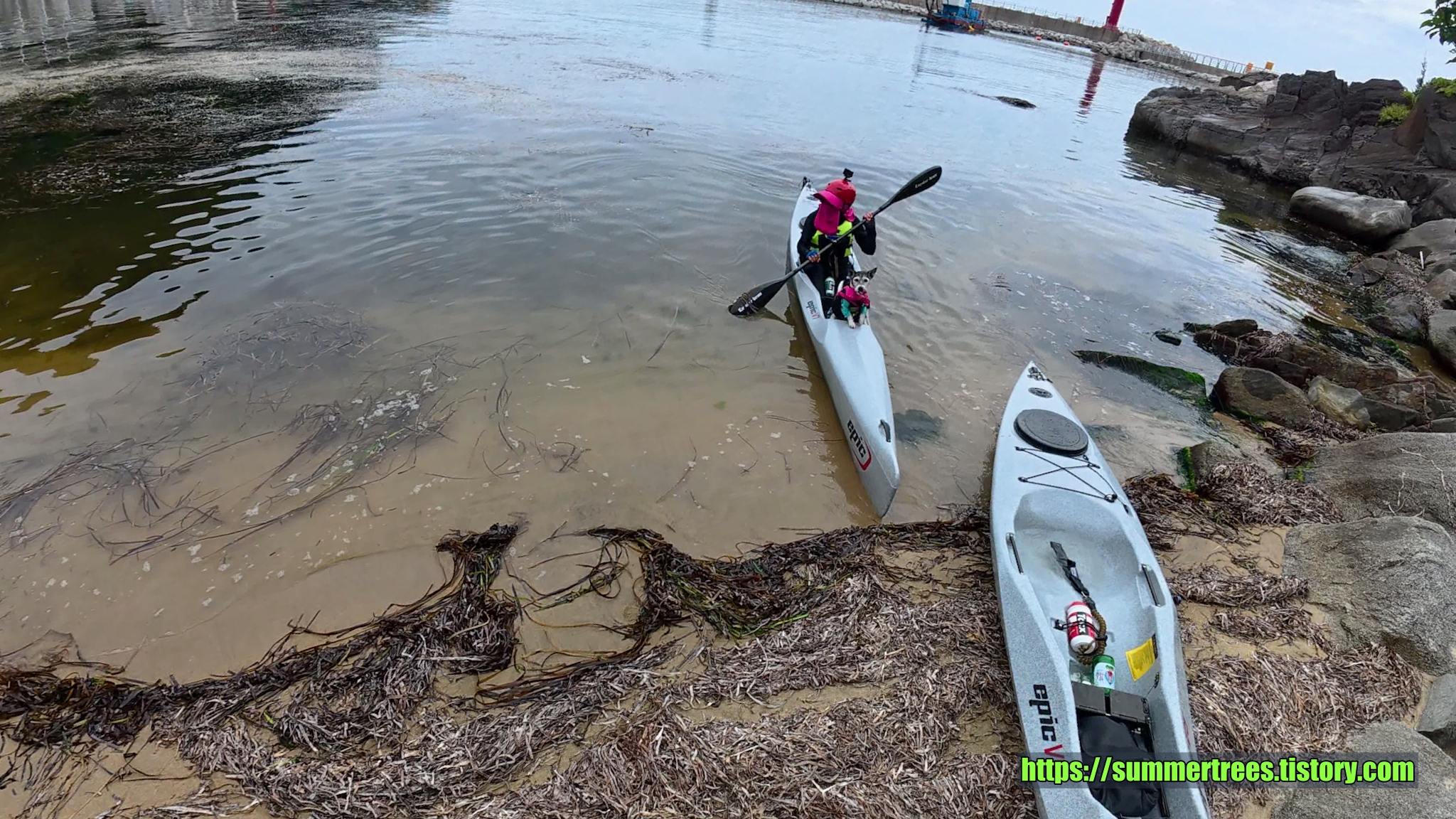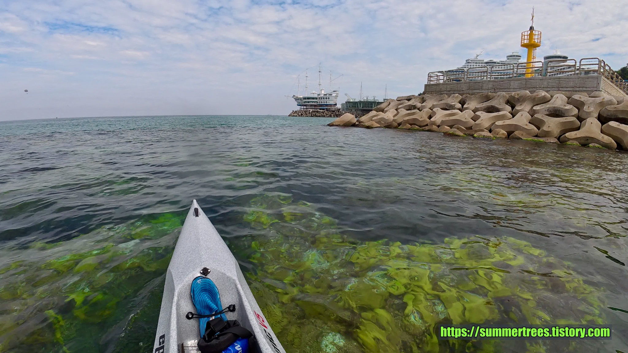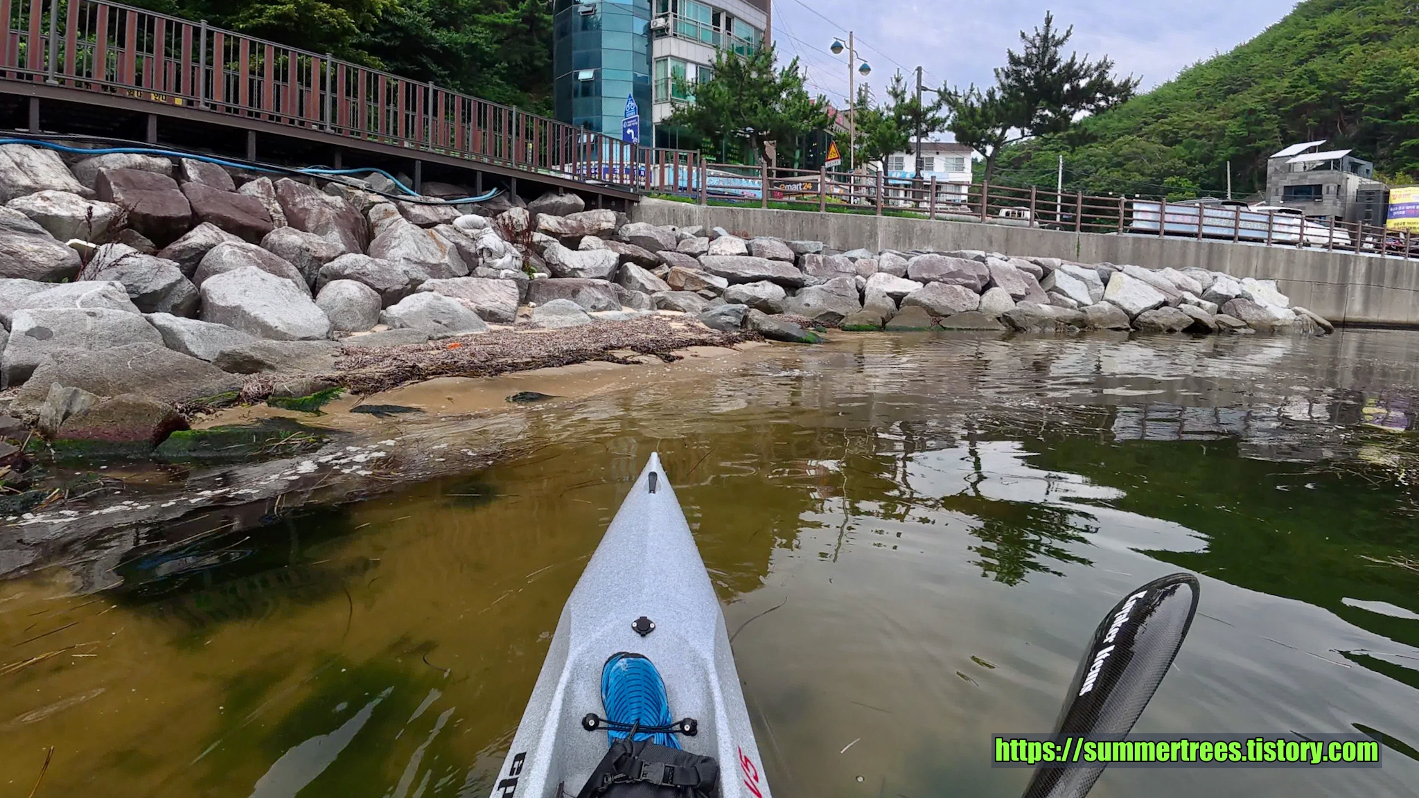 심곡항의 물이 갇혀있어서 그런지 깨끗하진 않았고 물풀이 많아 패들링을 방해했다.