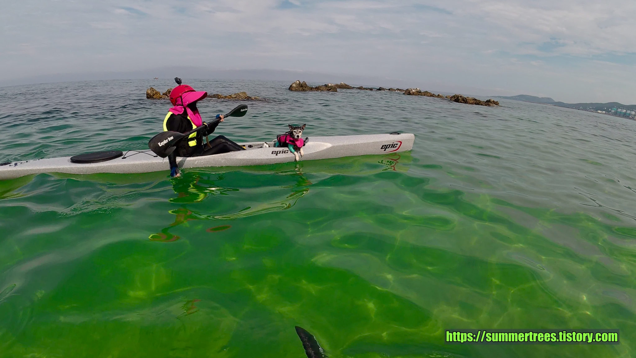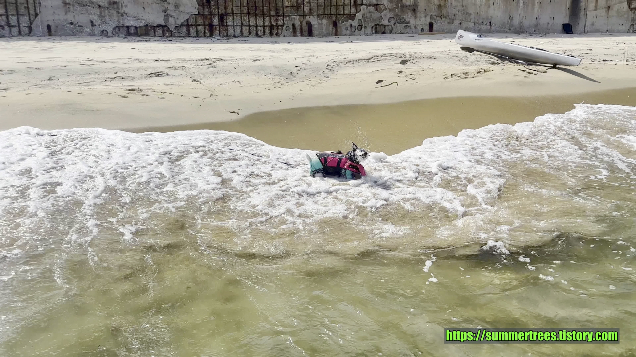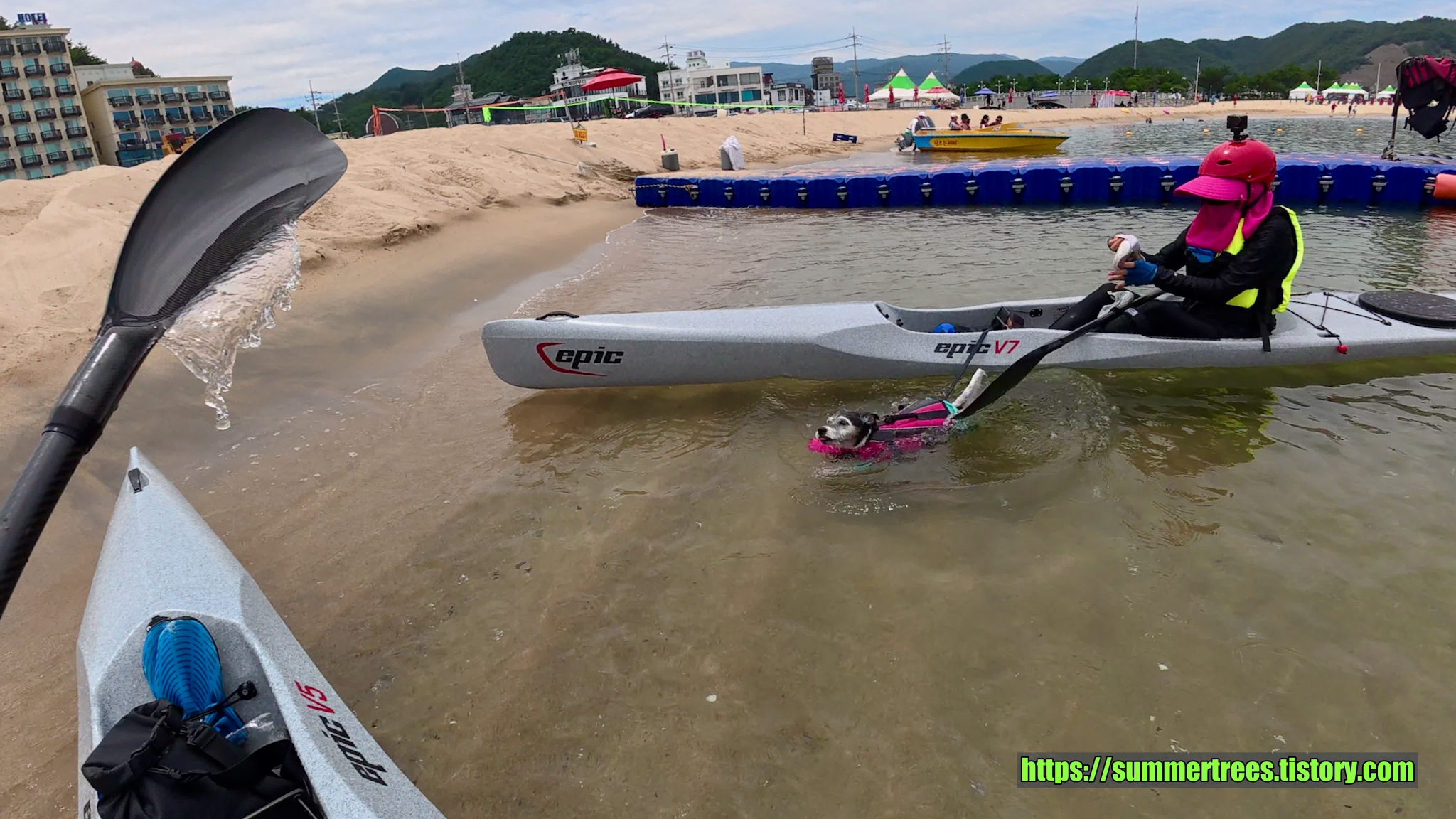 패들링 후 신나는 물놀이. 마야도 신나게 헤엄친다.