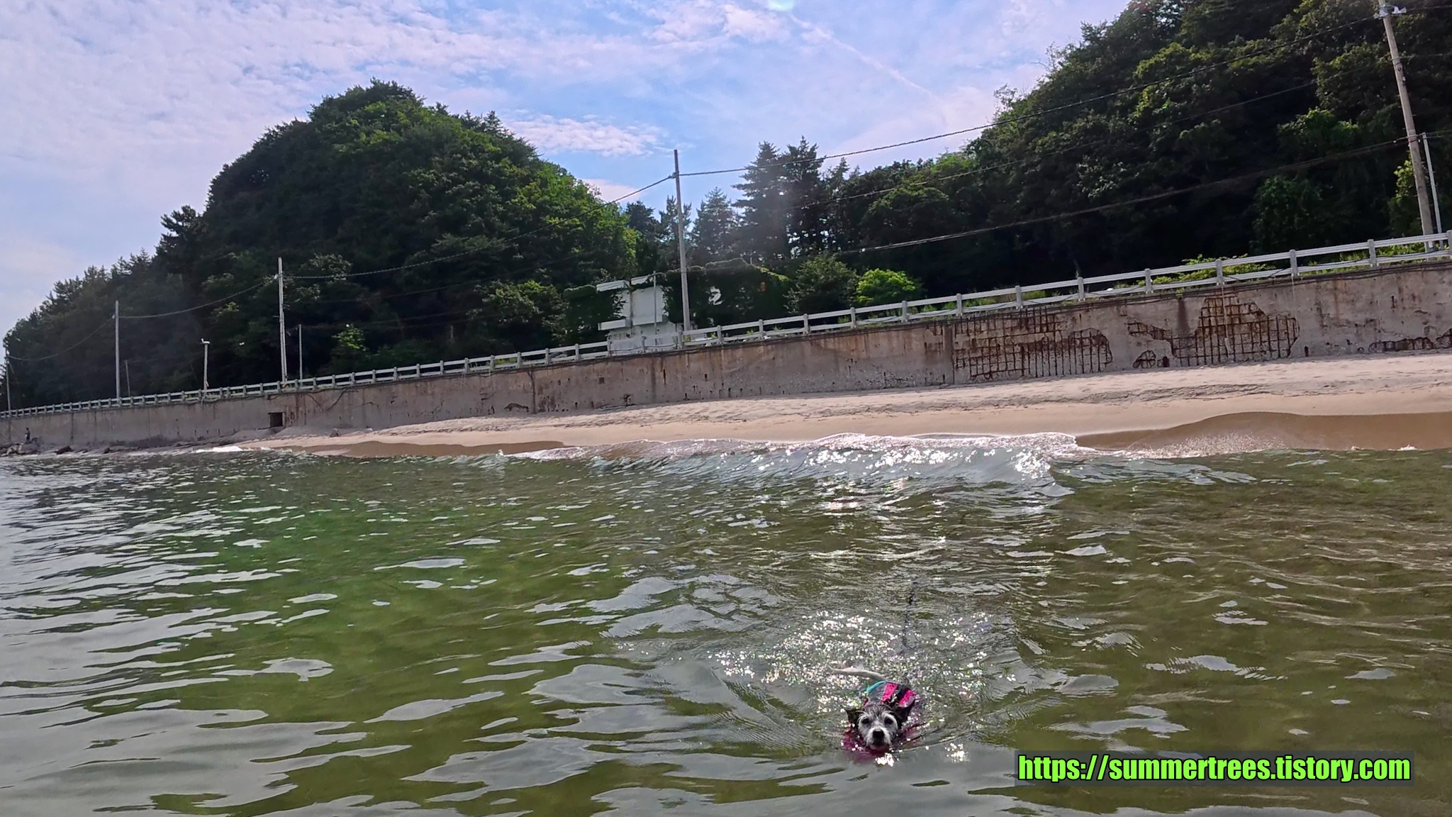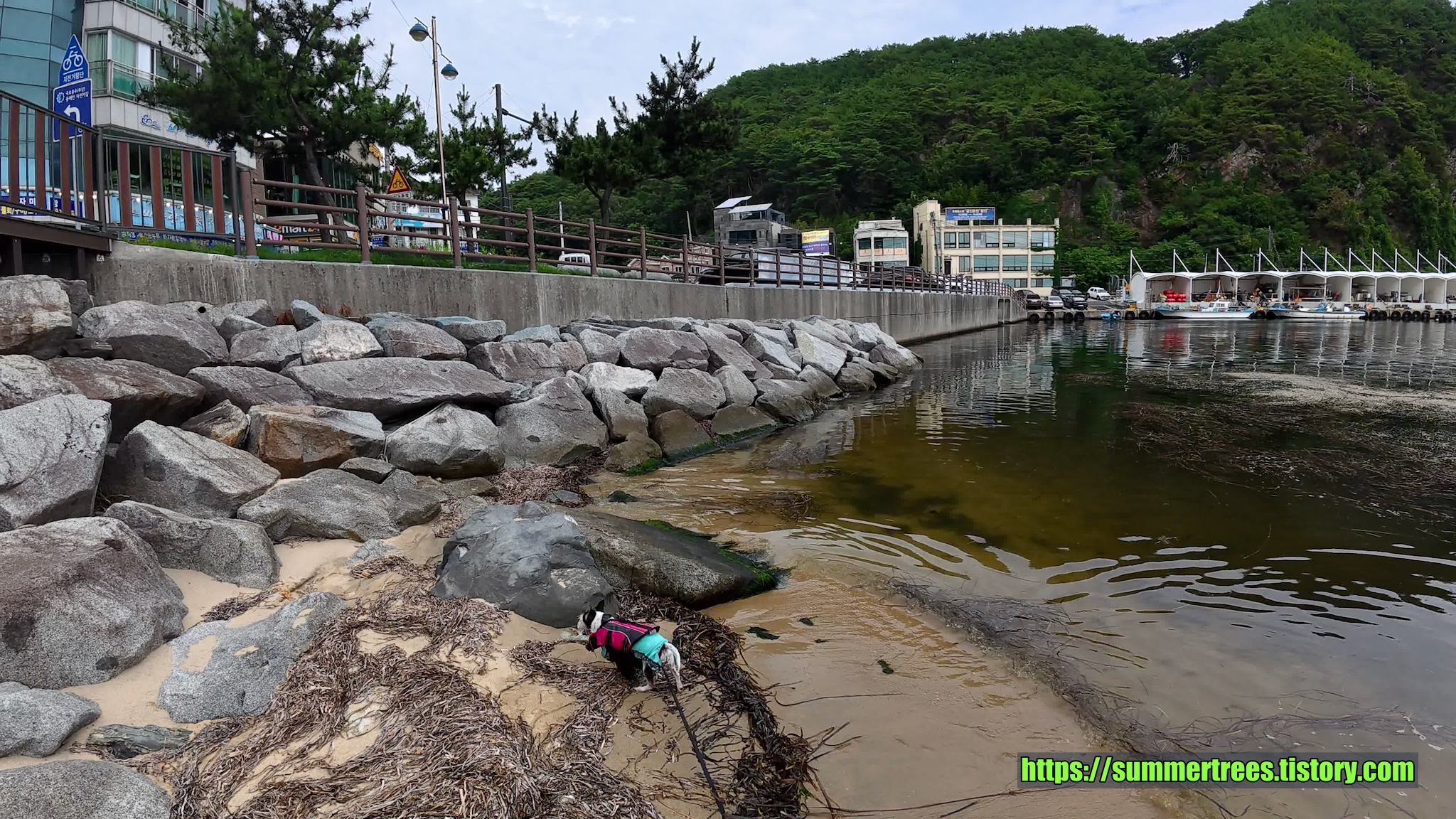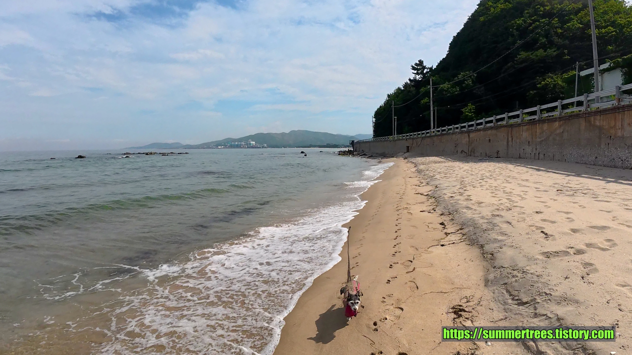 해수욕장은 마야가 못가는데 마침 딱 맞는 장소를 찾았다. 금진항 바로 옆 모래사장에서 놀았다. 도로의 벽이 그늘을 만들어줘서 오히려 해수욕장보다 좋았다. 마야도 신나게 놀았다.