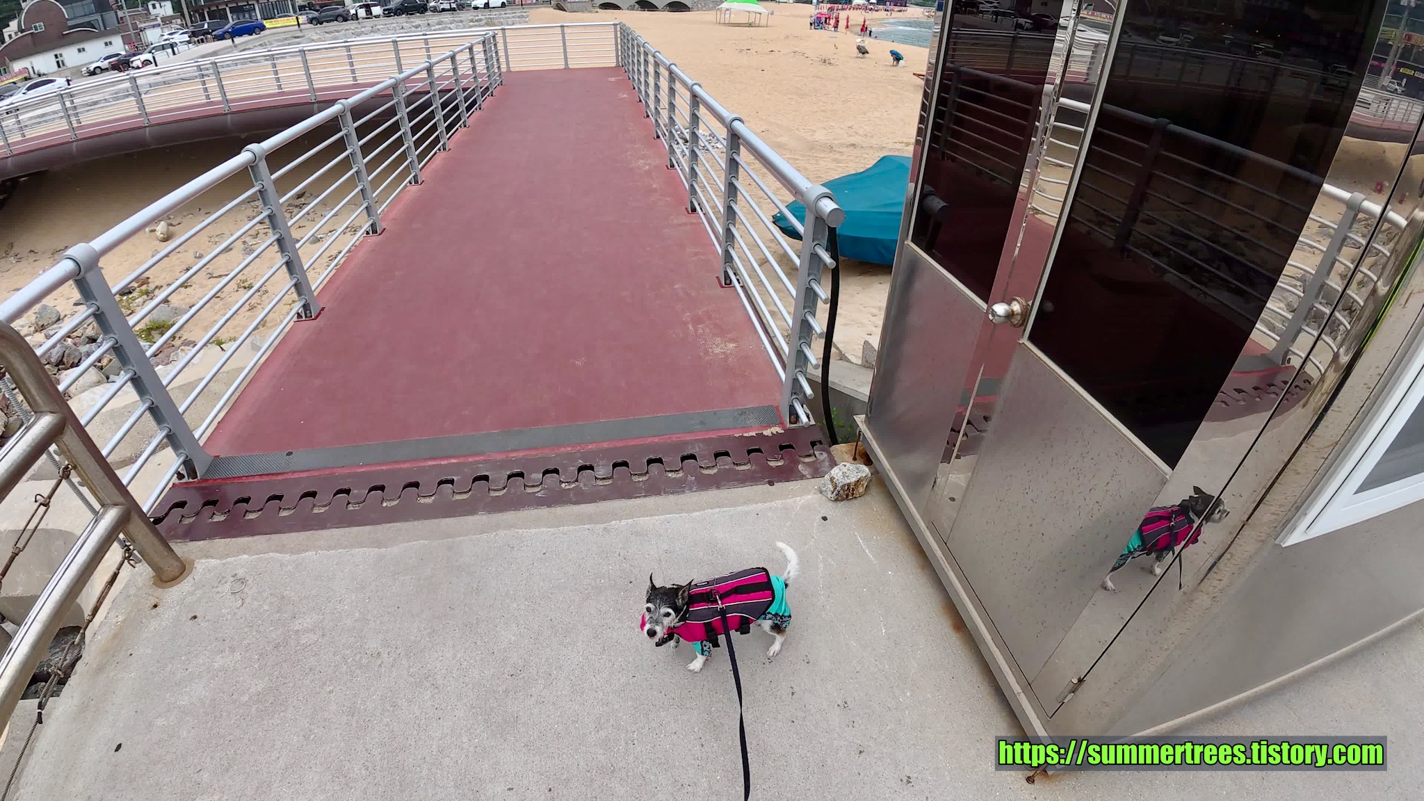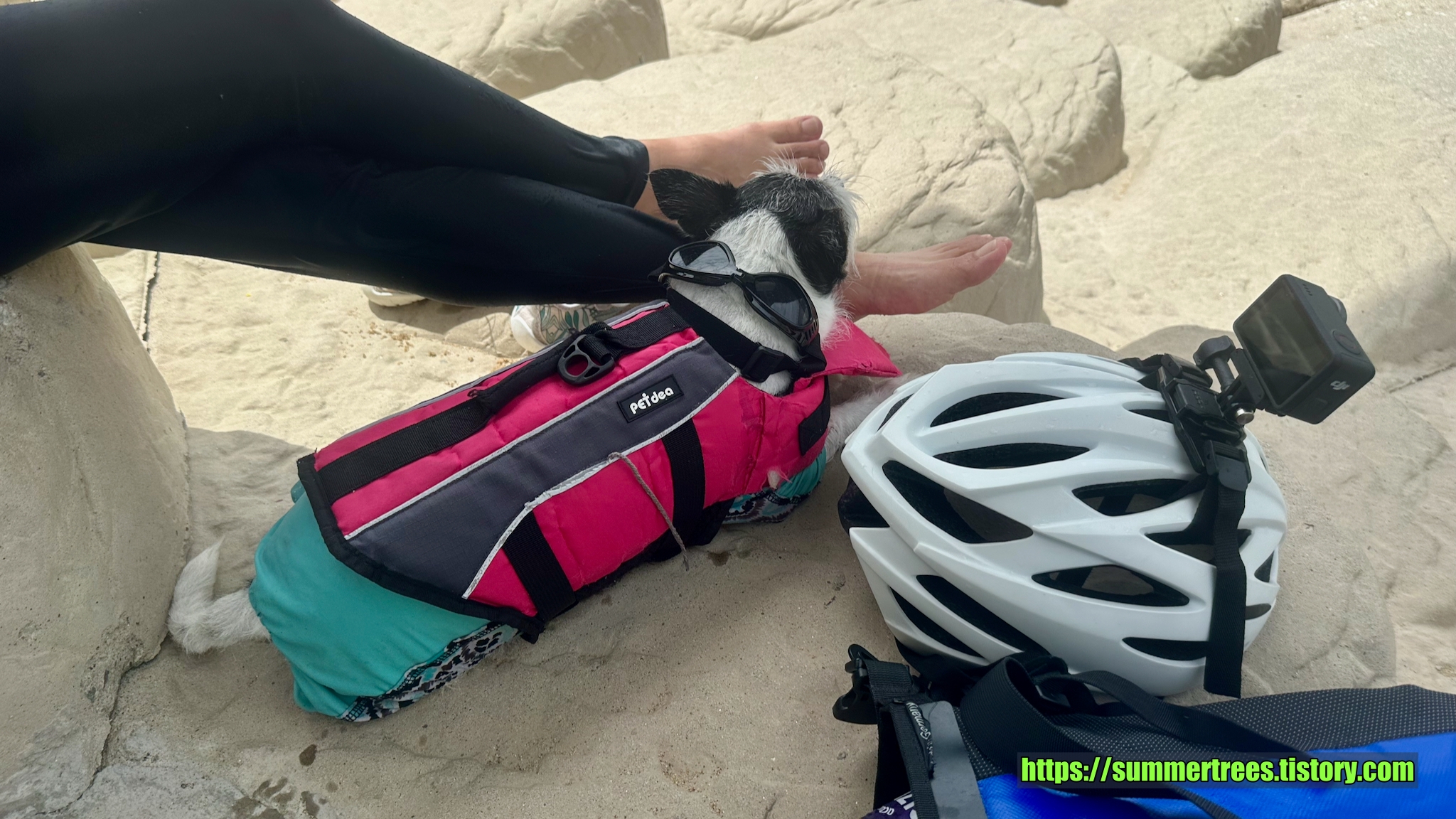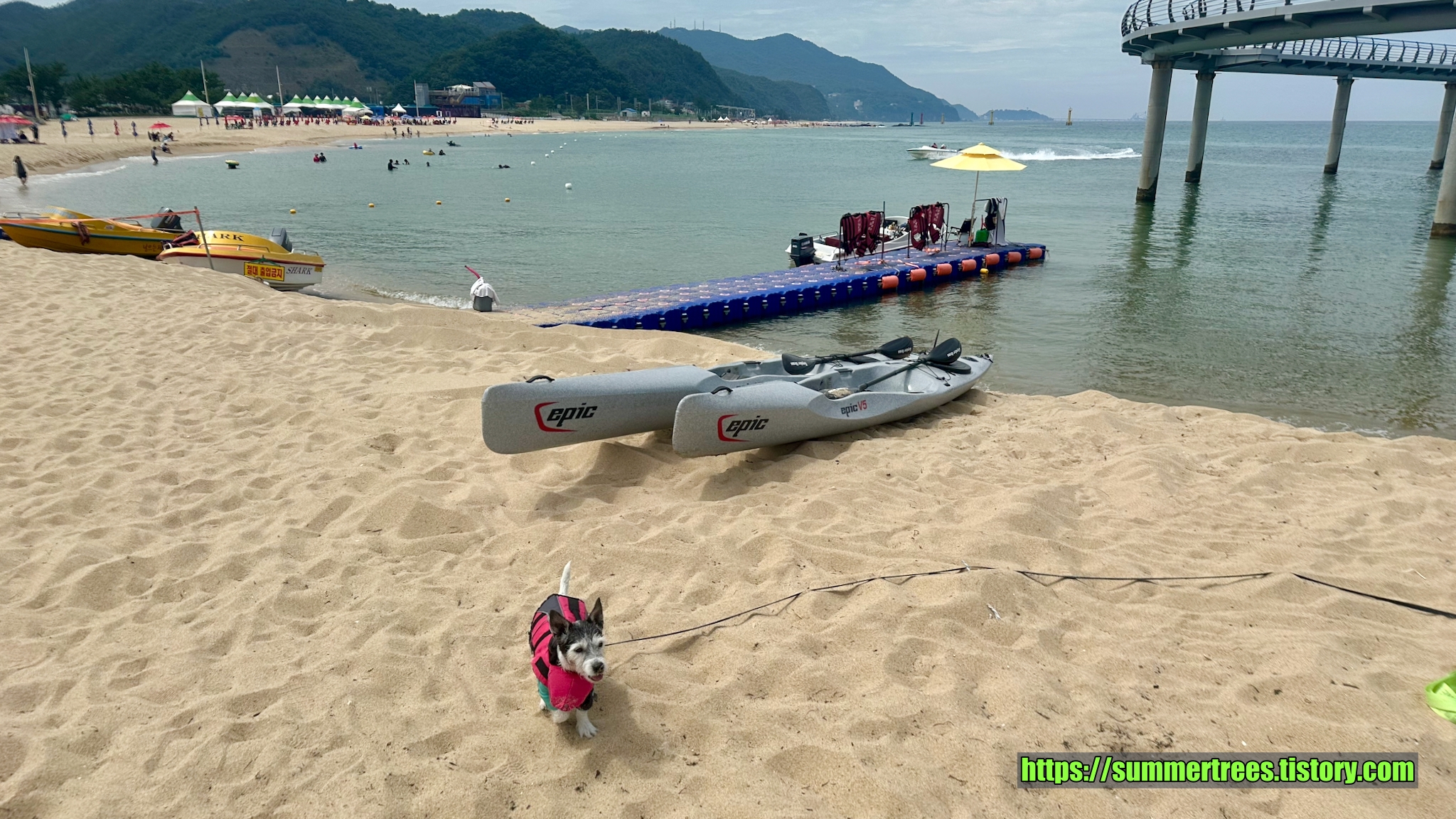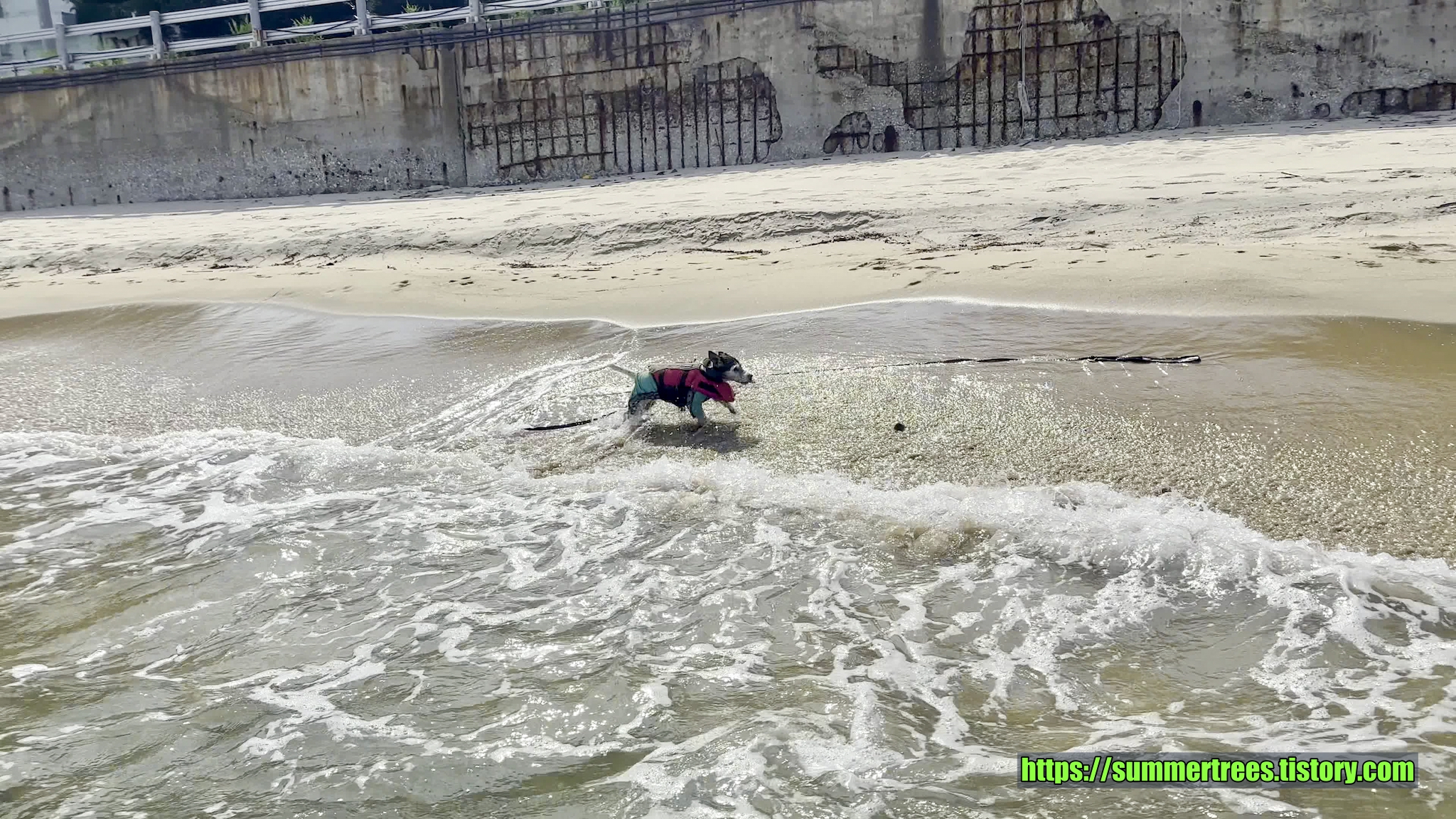 해수욕장은 마야가 못가는데 마침 딱 맞는 장소를 찾았다. 금진항 바로 옆 모래사장에서 놀았다. 도로의 벽이 그늘을 만들어줘서 오히려 해수욕장보다 좋았다. 마야도 신나게 놀았다.