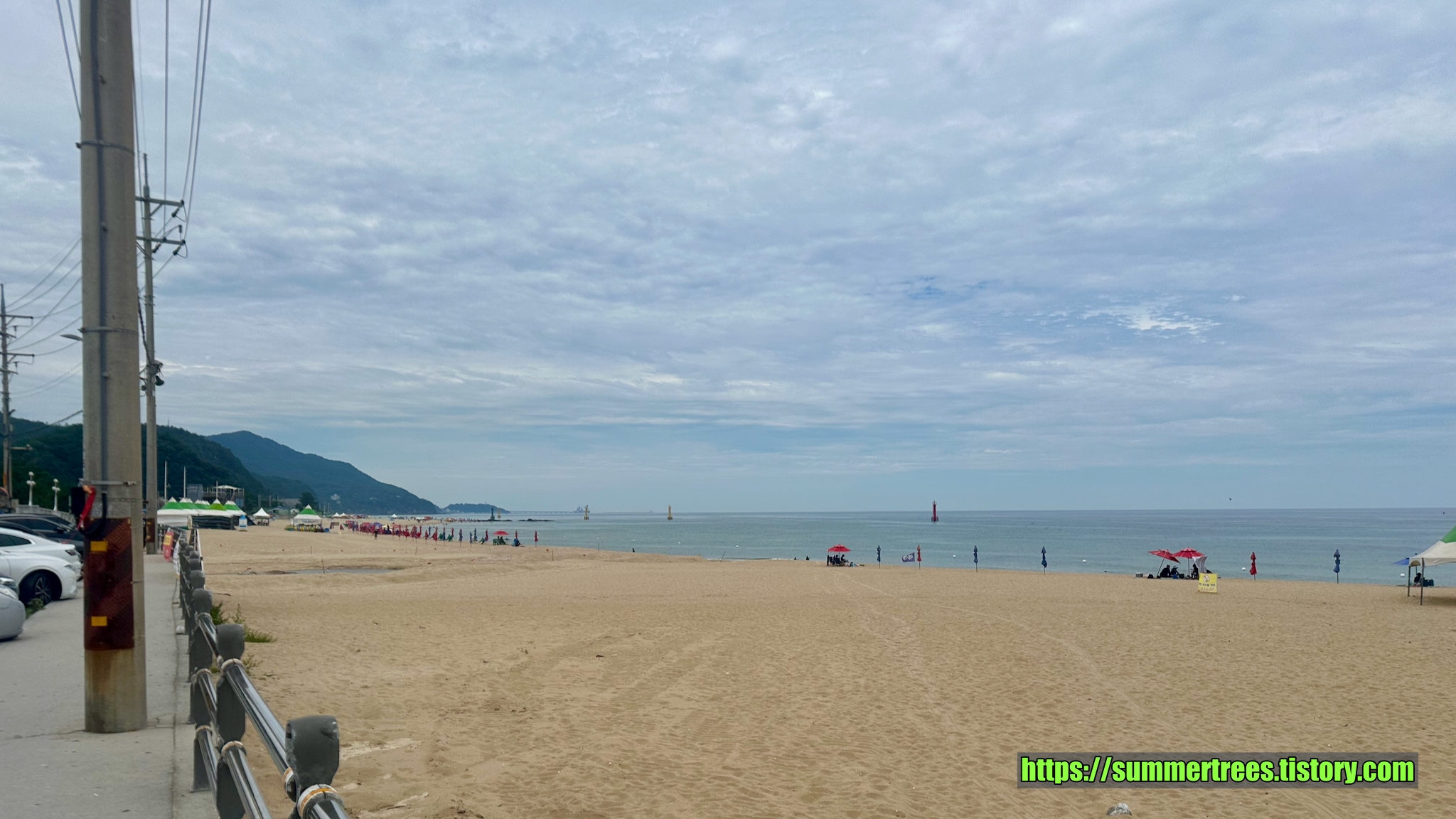 금진해수욕장에는 모래를 씻을 수 있는 수도가 있어 편했다. 하지만 비가 너무 안와서 화장실을 폐쇄할 예정이라고 안내문이 붙어있었다. 강원도를 다녀보면 관광이 주된 산업이어서 그런지 물을 마음껏 쓰도록 물인심이 좋았는데 비가 오지 않아 그런 면이 힘들어진다고 생각하니 안타까웠다.