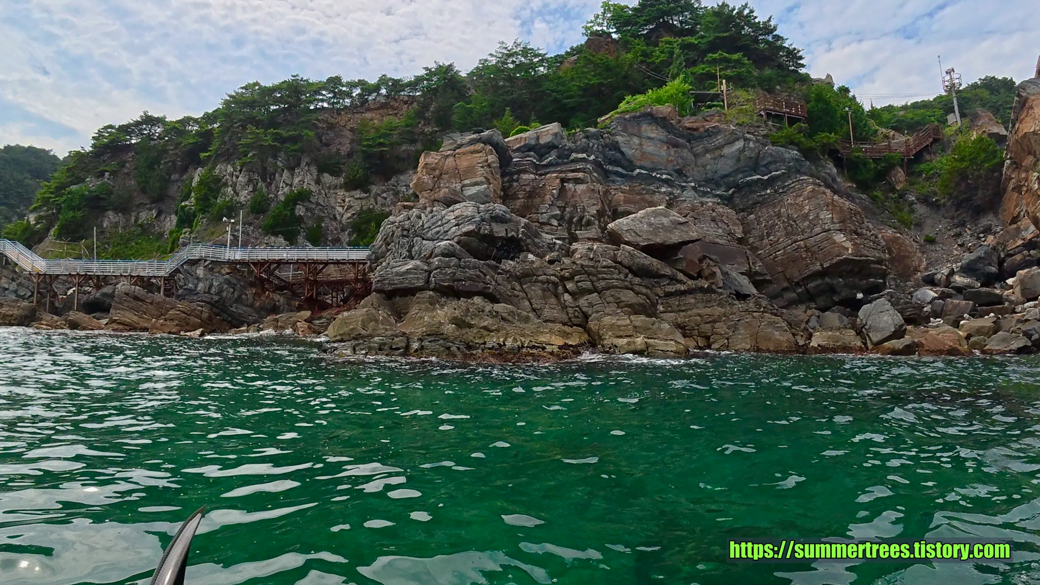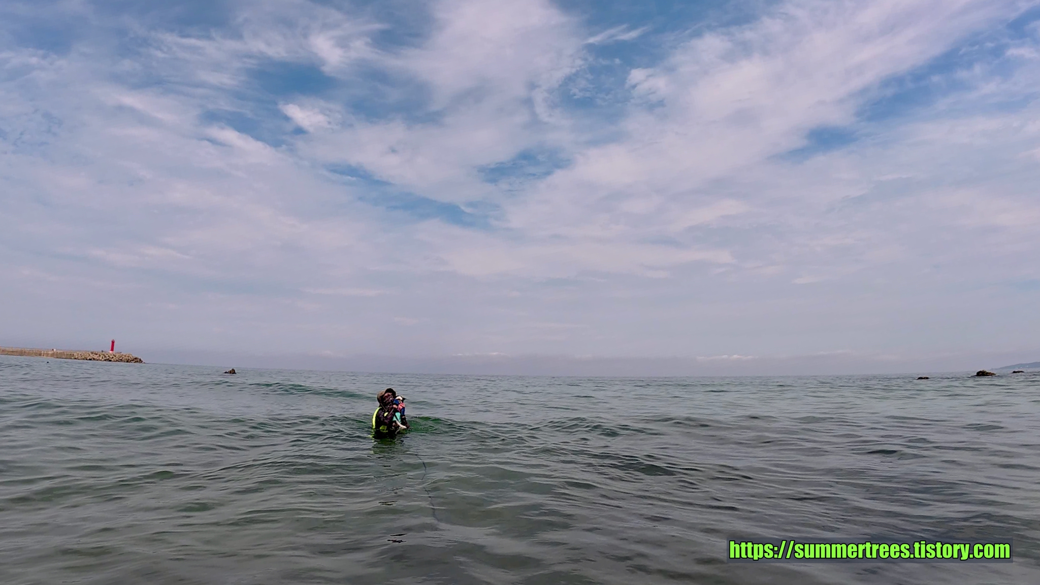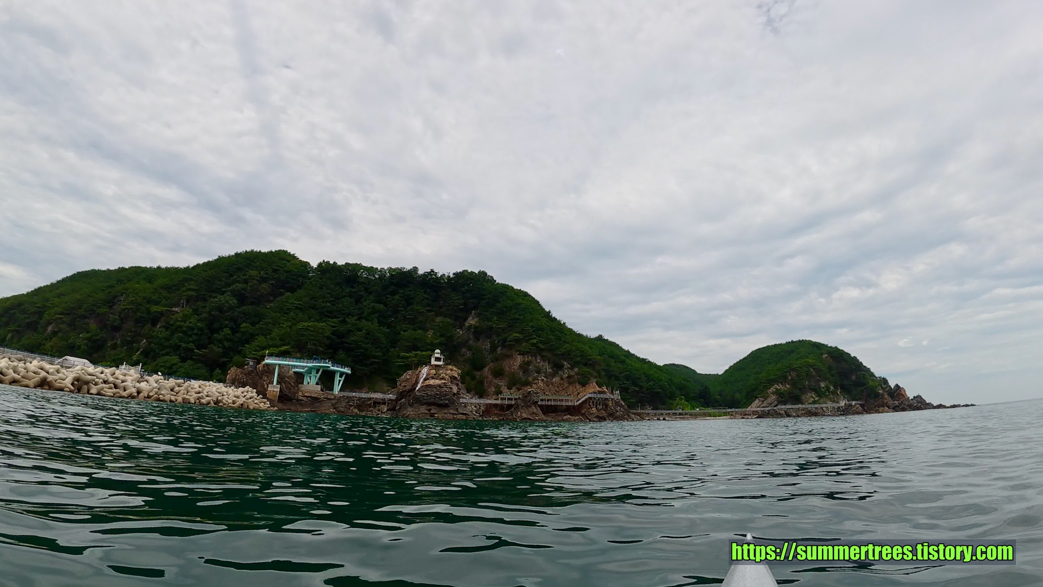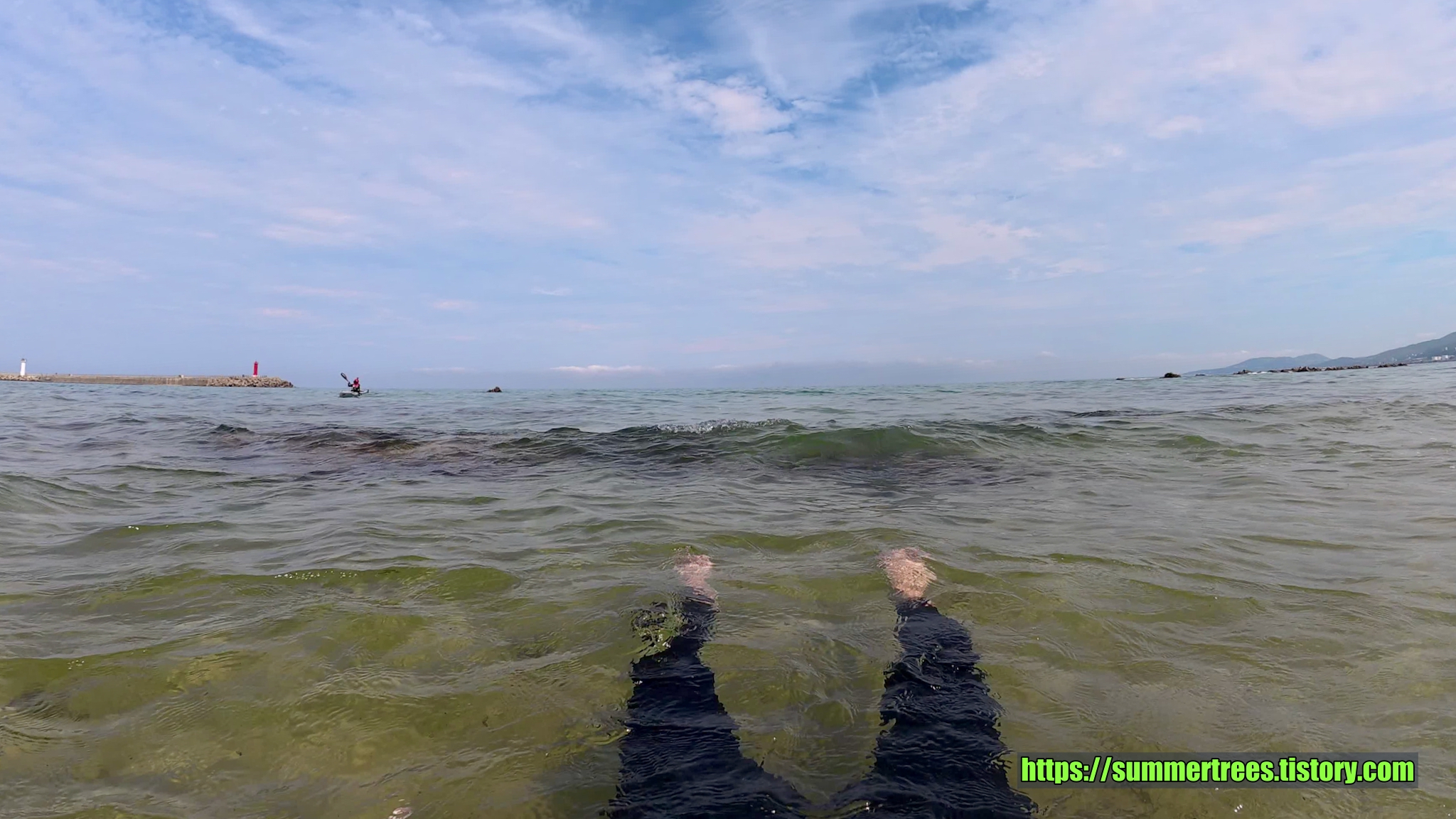 바다에 깔아놓은 테트라포드가 잘 보일 정도로 물이 깨끗하다. 그리고 그 속에서 놀고 있는 물고기가 귀여웠다.