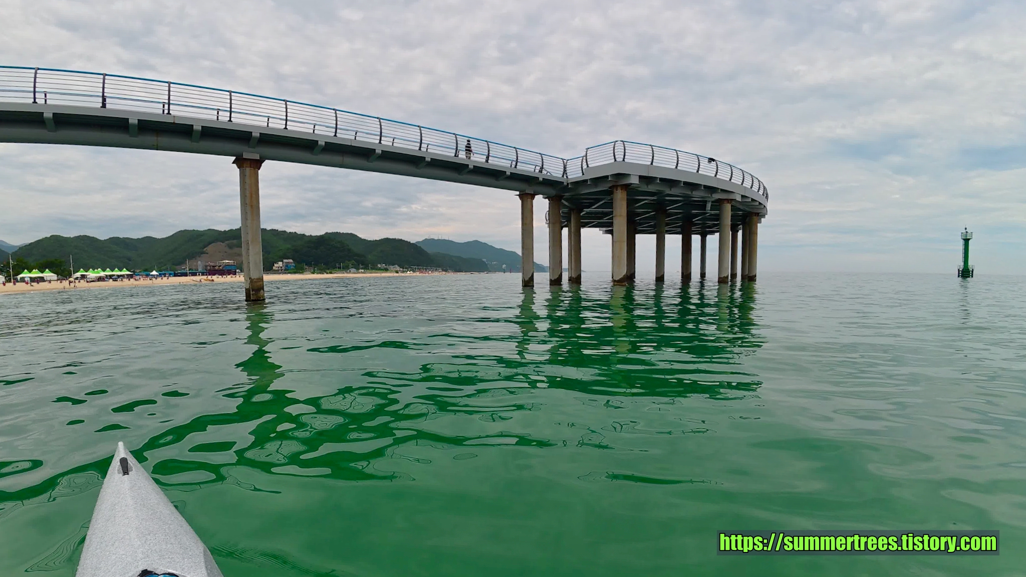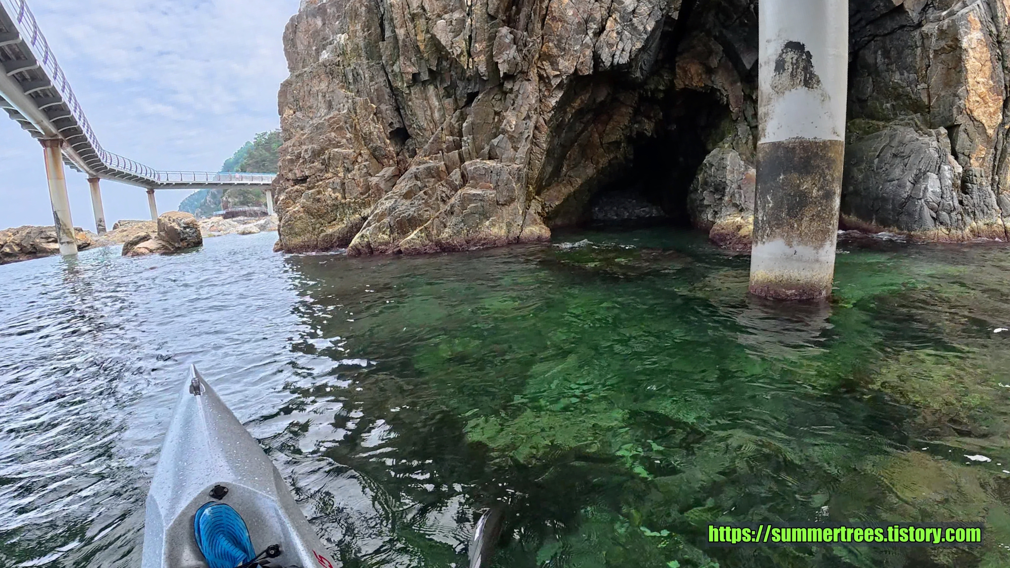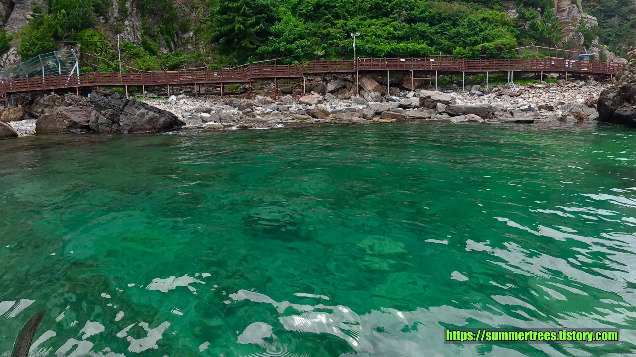 바다에 깔아놓은 테트라포드가 잘 보일 정도로 물이 깨끗하다. 그리고 그 속에서 놀고 있는 물고기가 귀여웠다.