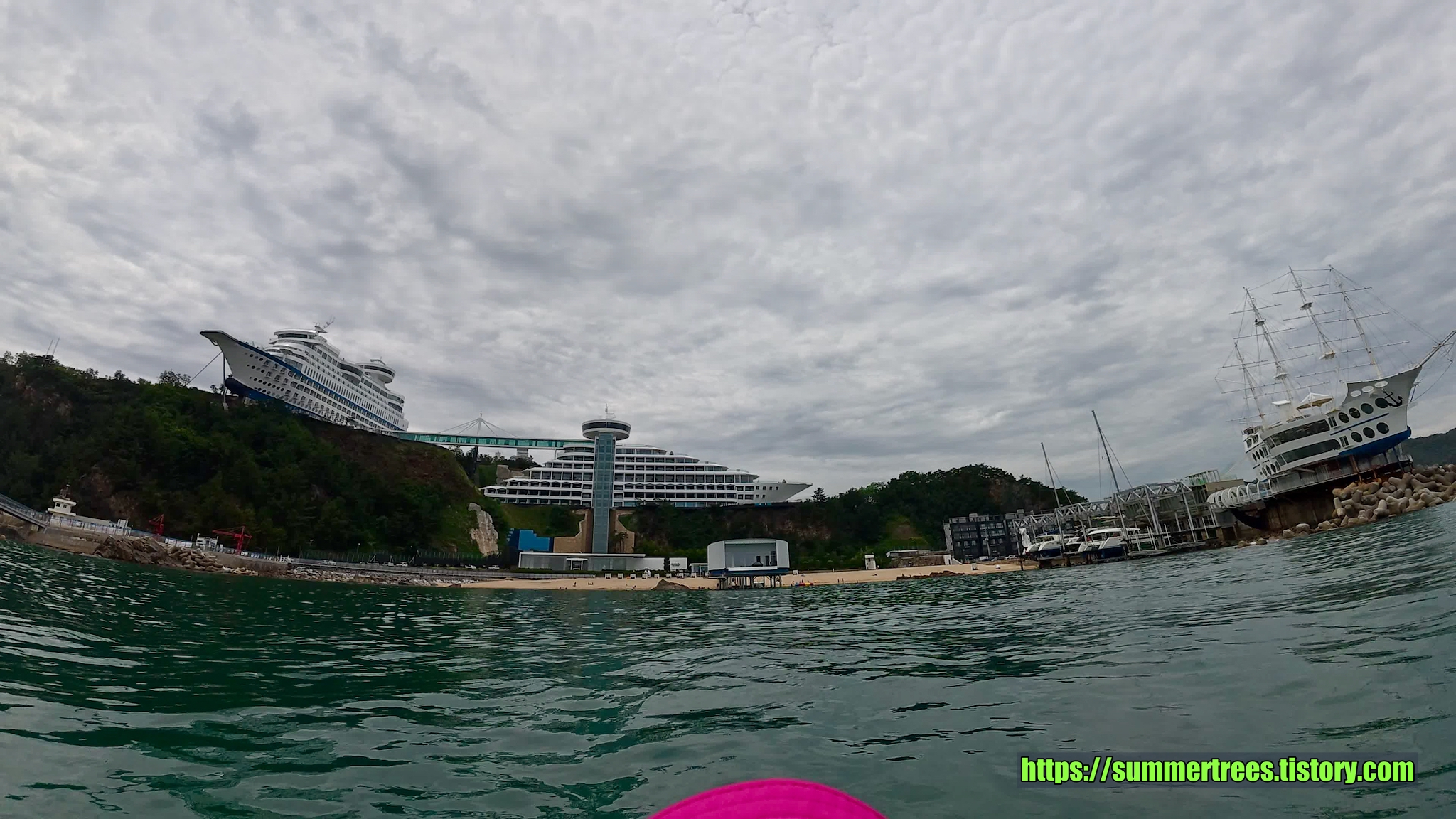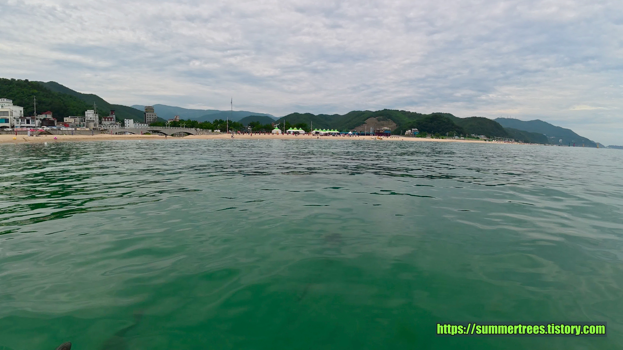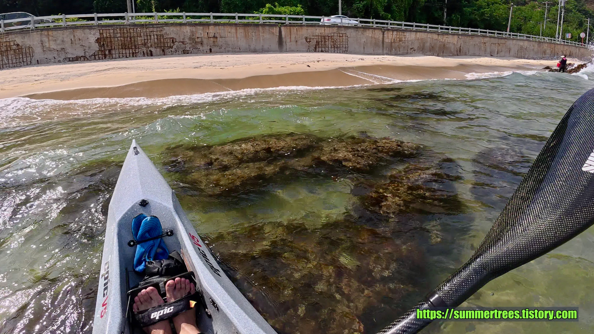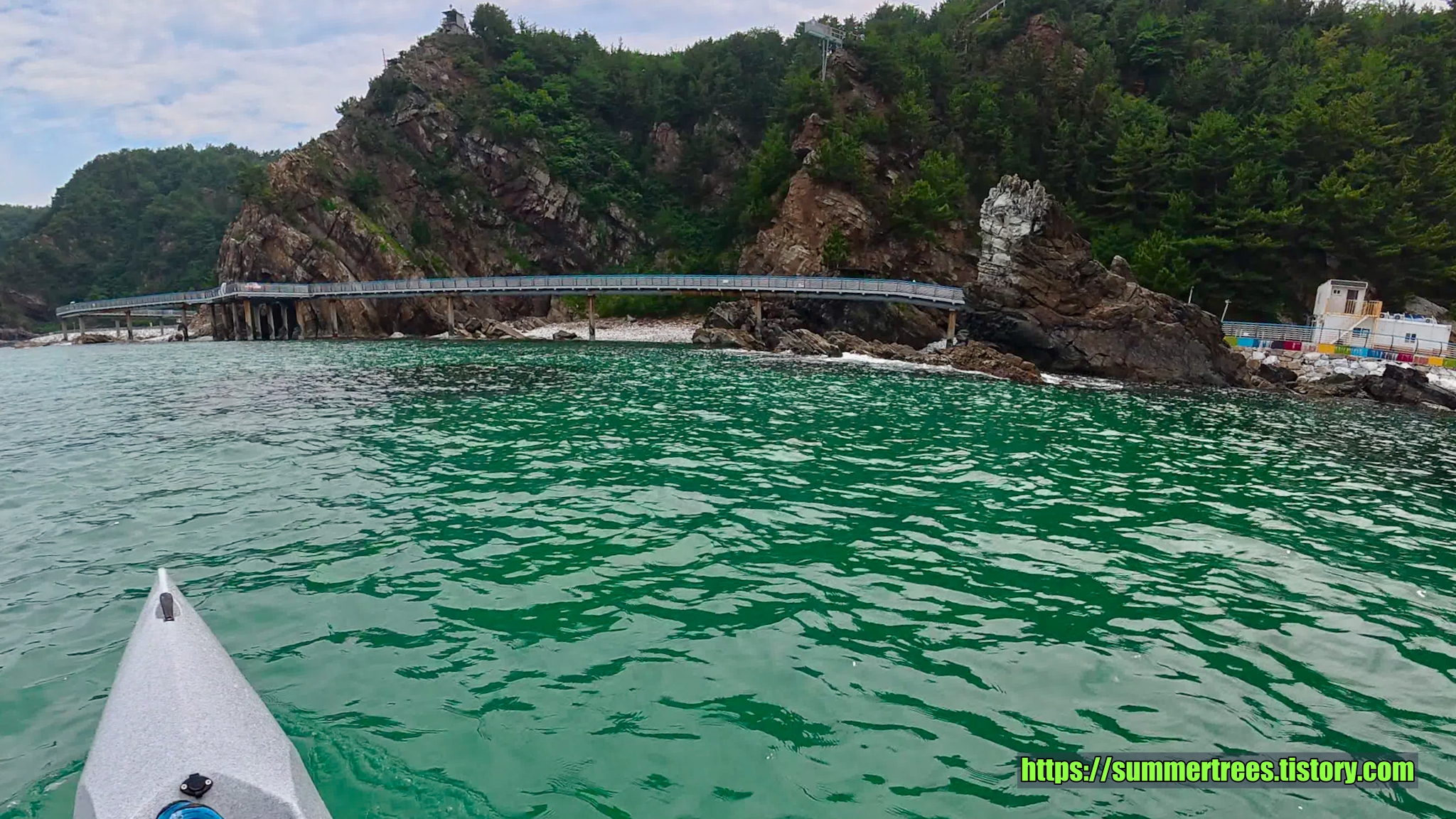 바다에 깔아놓은 테트라포드가 잘 보일 정도로 물이 깨끗하다. 그리고 그 속에서 놀고 있는 물고기가 귀여웠다.