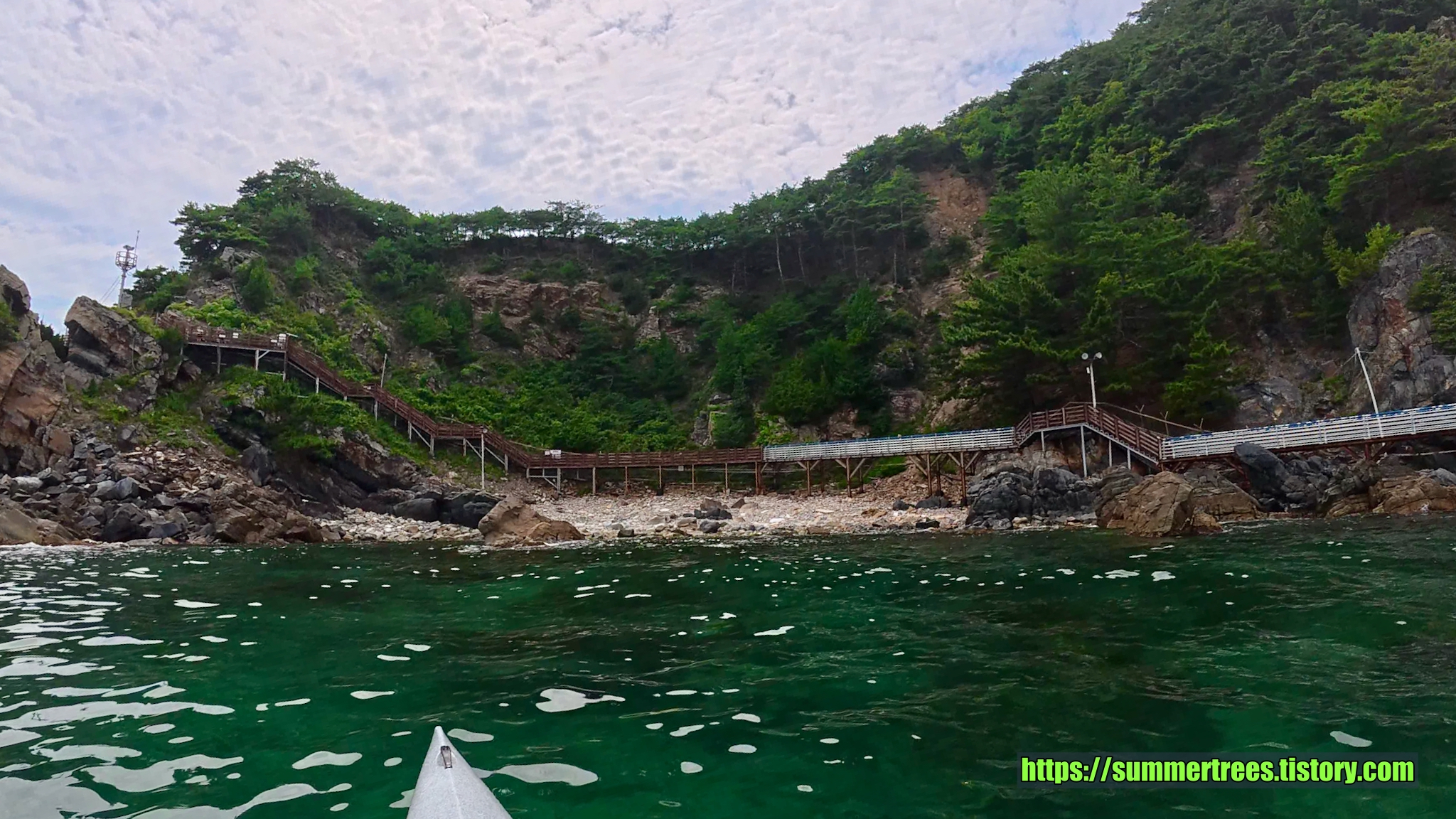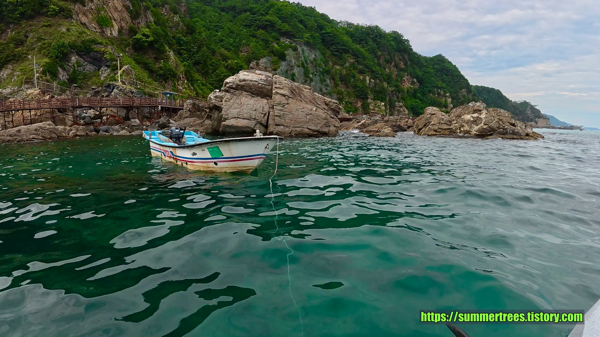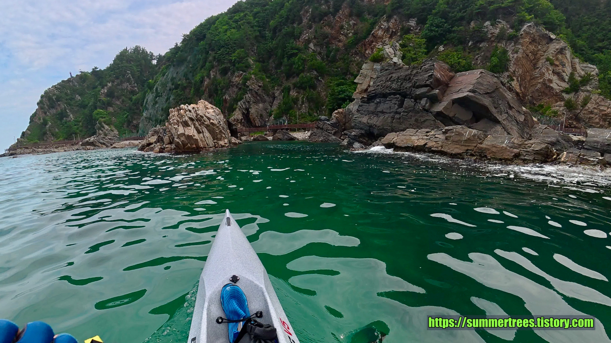 부산에 사는 우리는 부채길이 그렇게 인상적이지는 않았다. 오히려 부산의 이기대가 더 이쁜데라는 생각이 들었다. 하지만 물색만큼은 이곳이 최고였다.