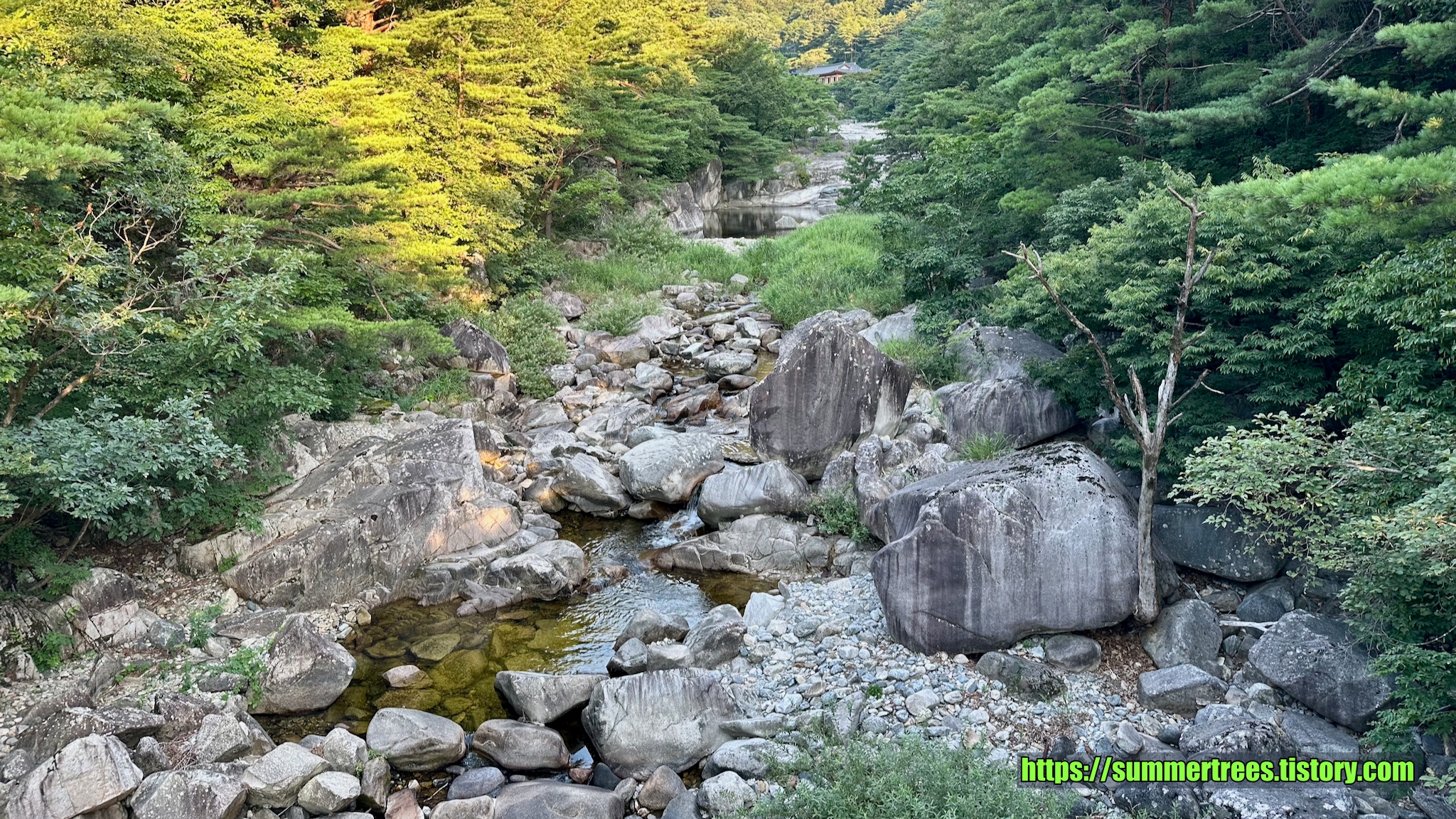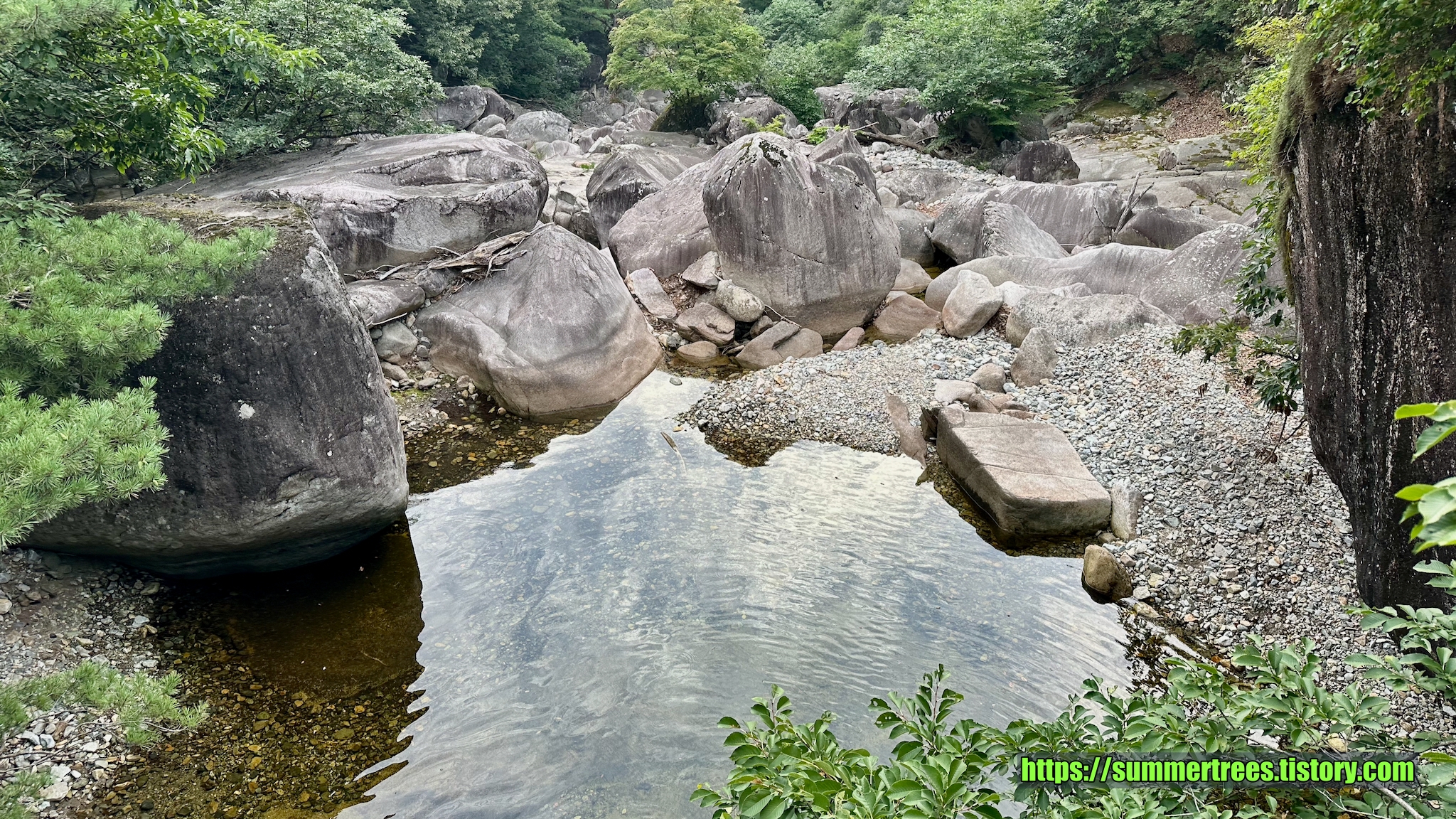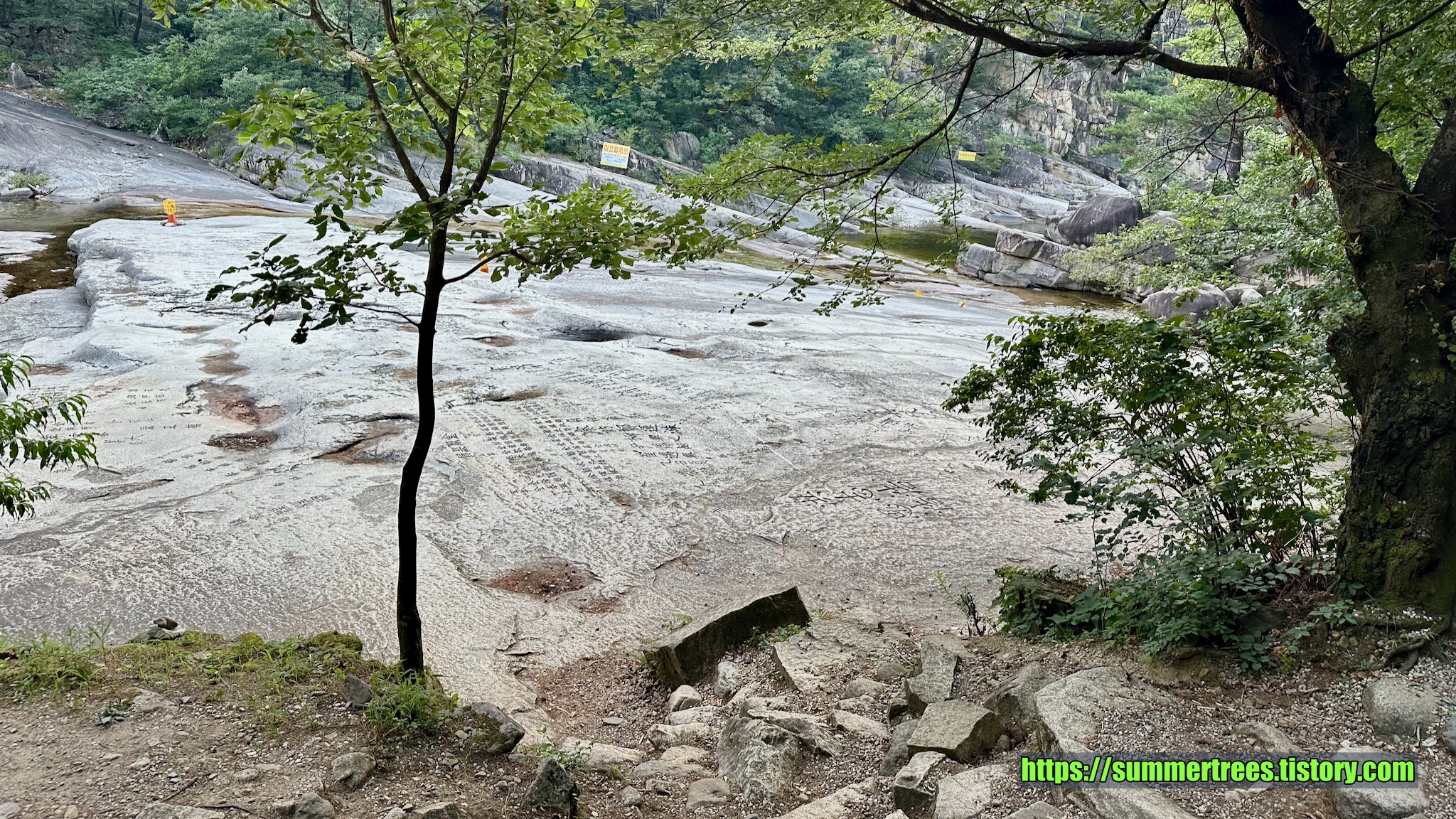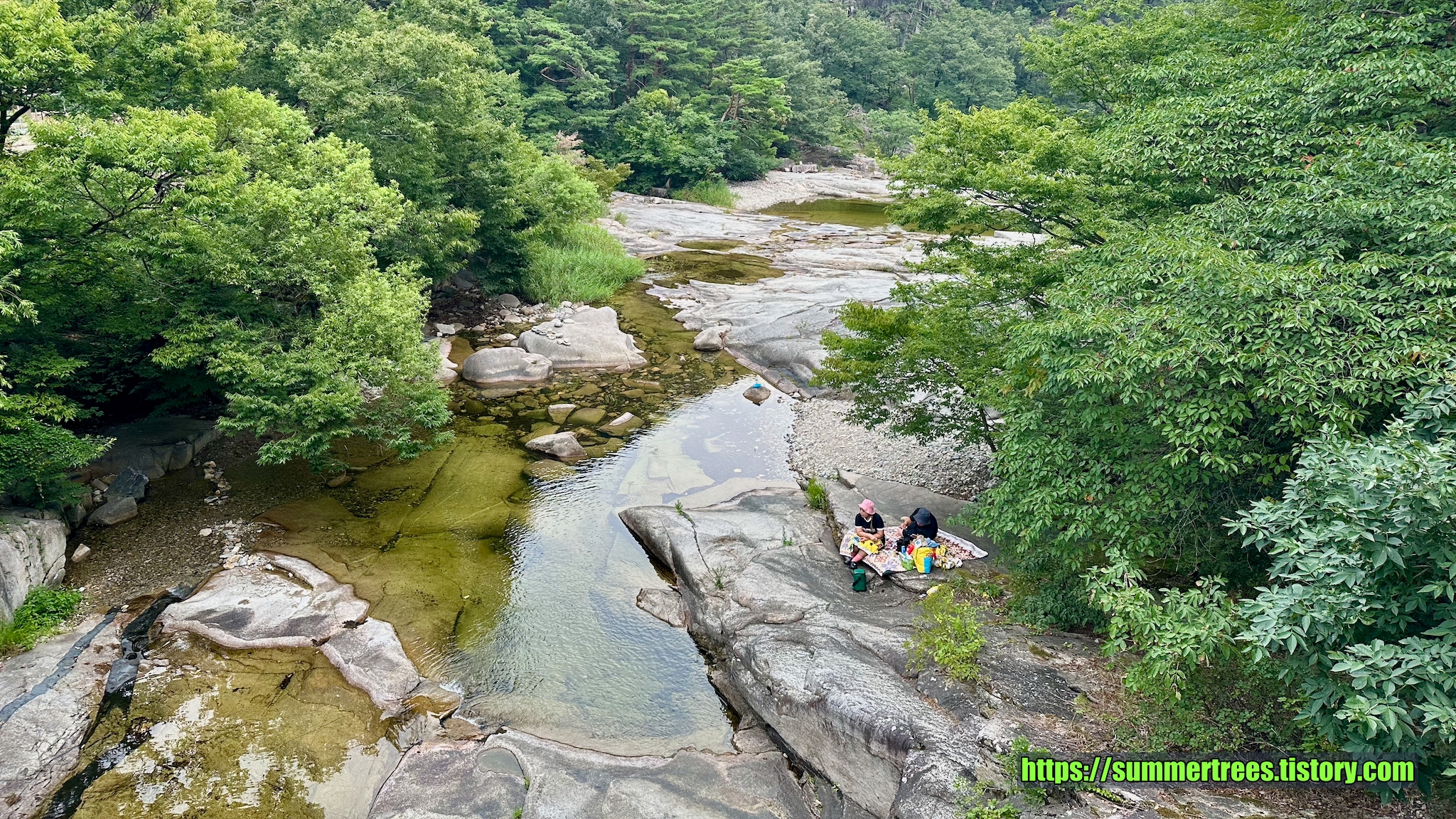 사람들이 피크닉 짐을 싸서 많이 들어오는데, 여기서 시간을 보내지 싶다. 계곡을 즐기기 좋다.