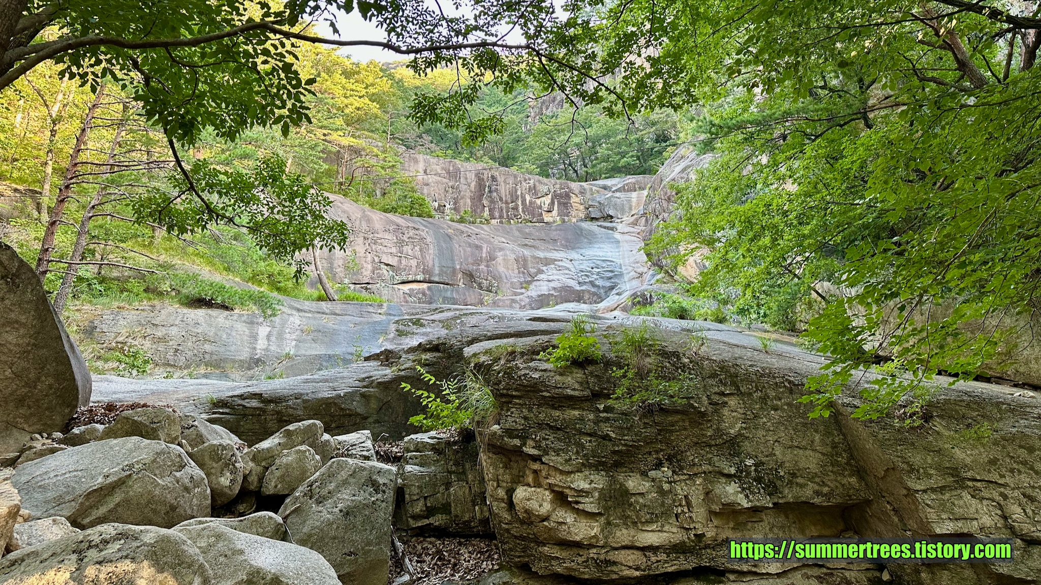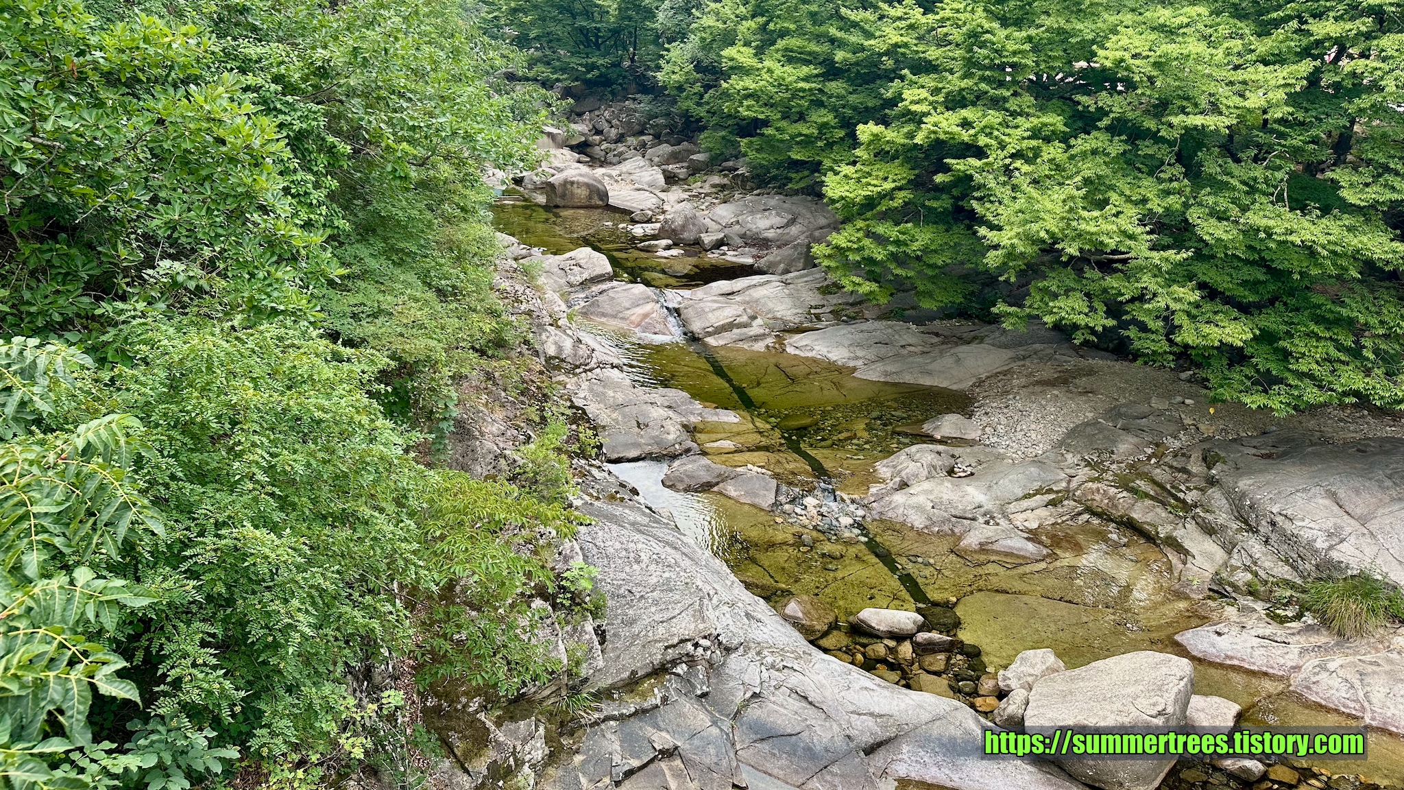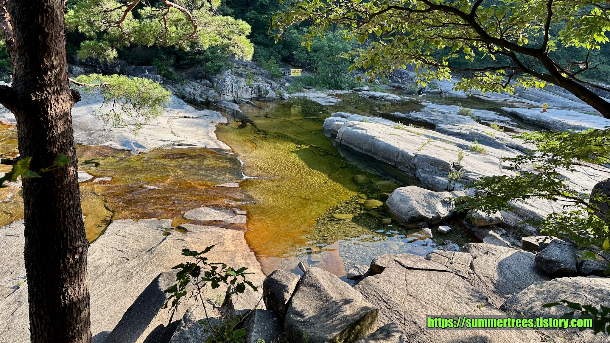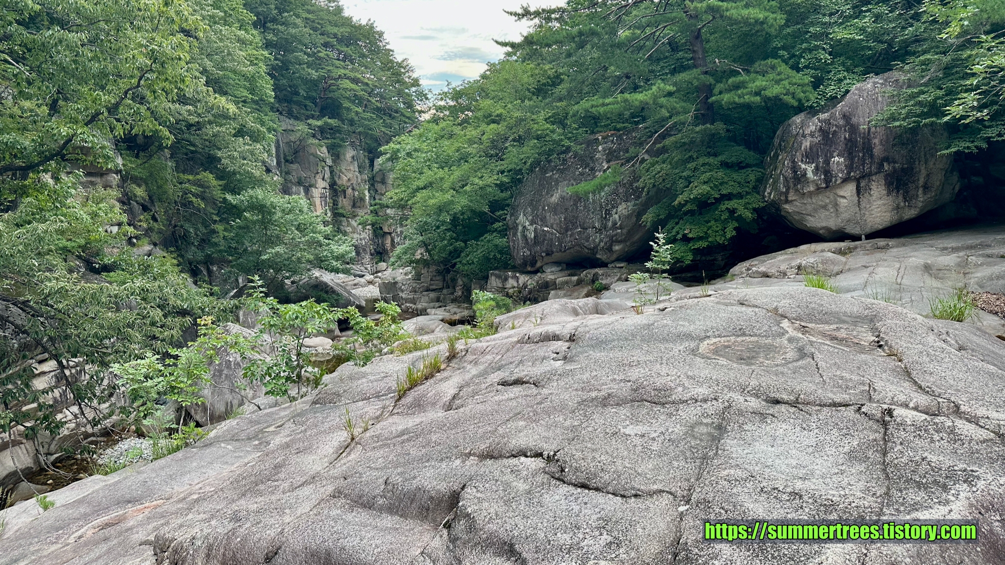 사람들이 피크닉 짐을 싸서 많이 들어오는데, 여기서 시간을 보내지 싶다. 계곡을 즐기기 좋다.
