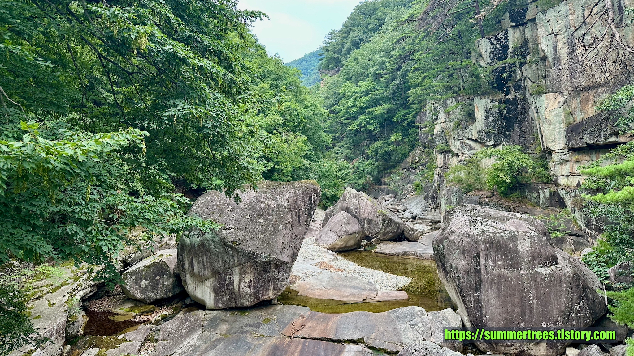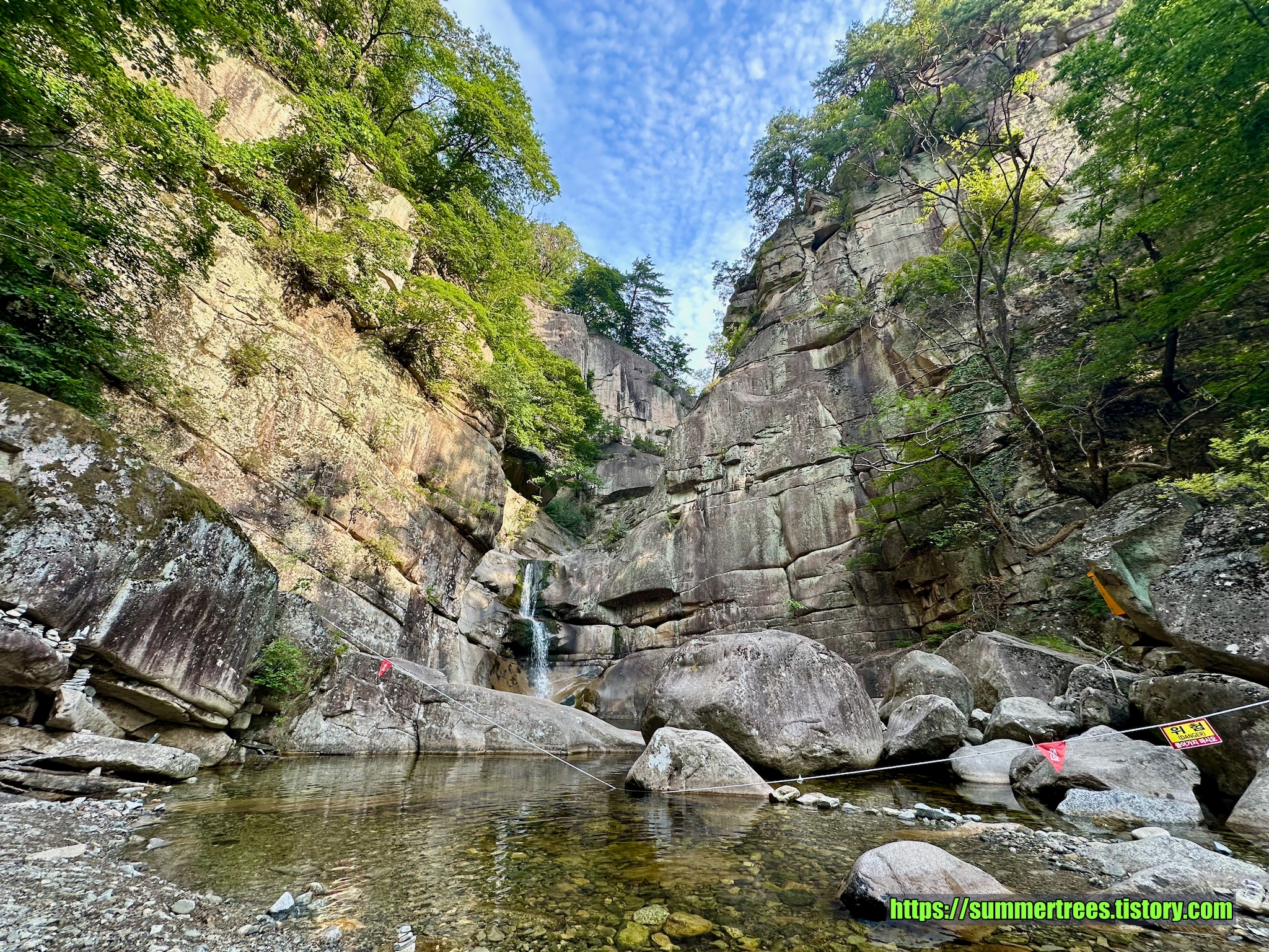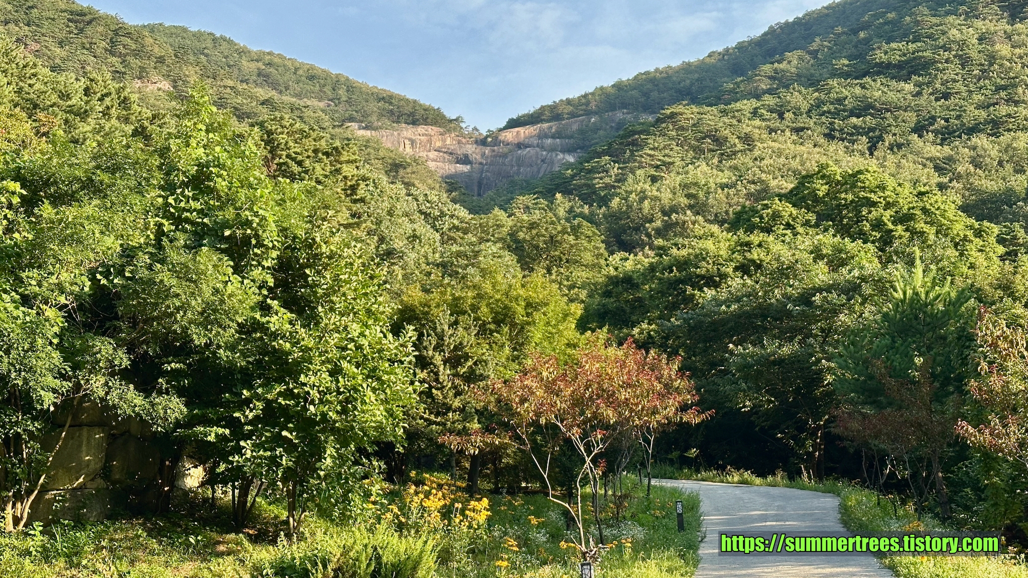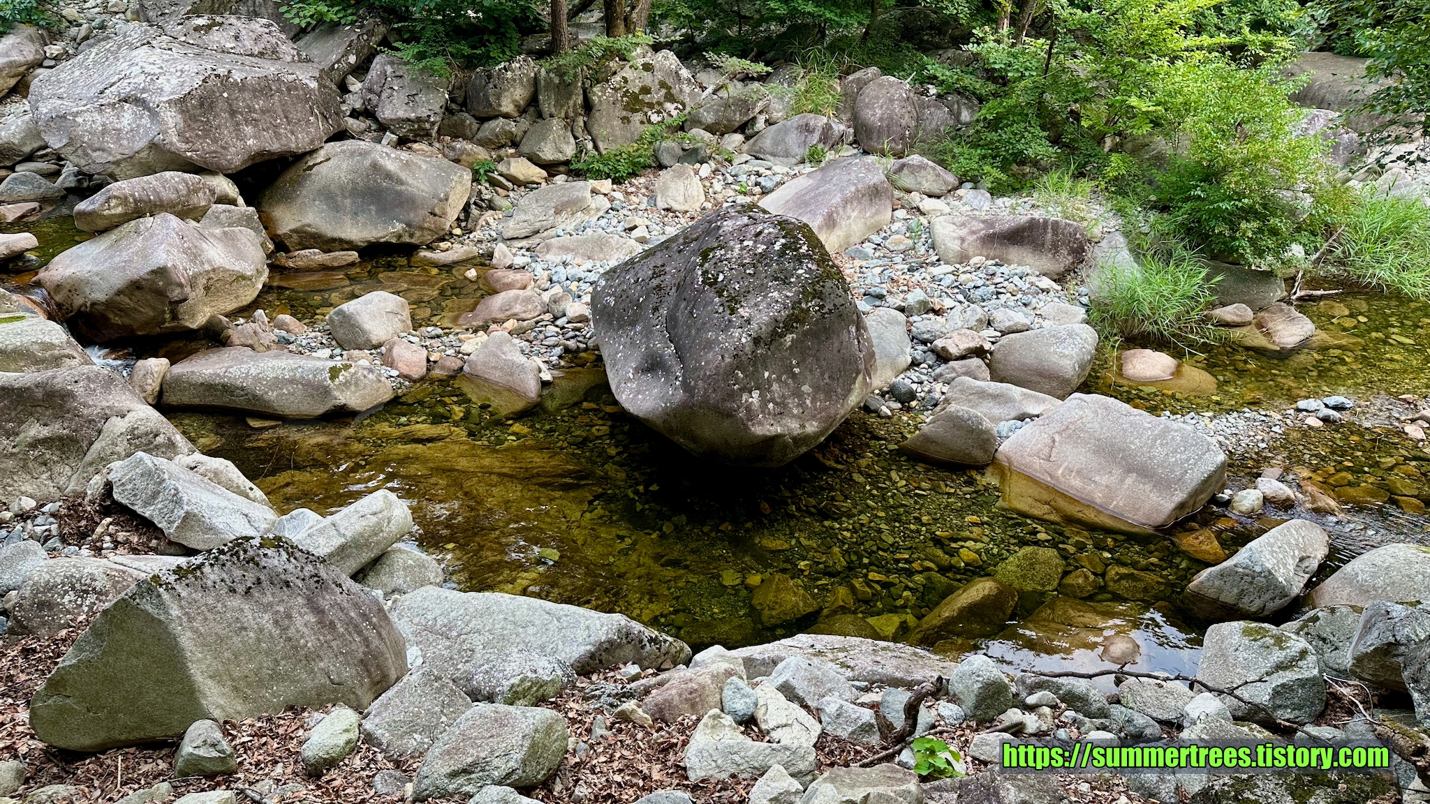 사람들이 피크닉 짐을 싸서 많이 들어오는데, 여기서 시간을 보내지 싶다. 계곡을 즐기기 좋다.