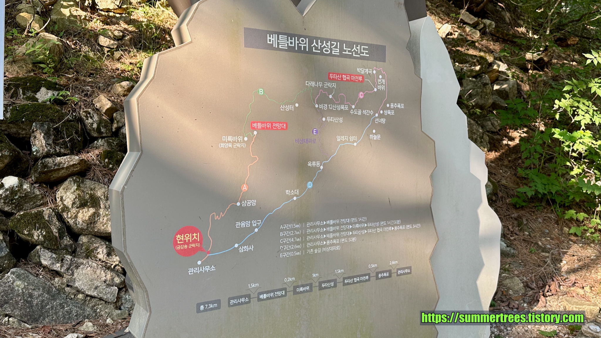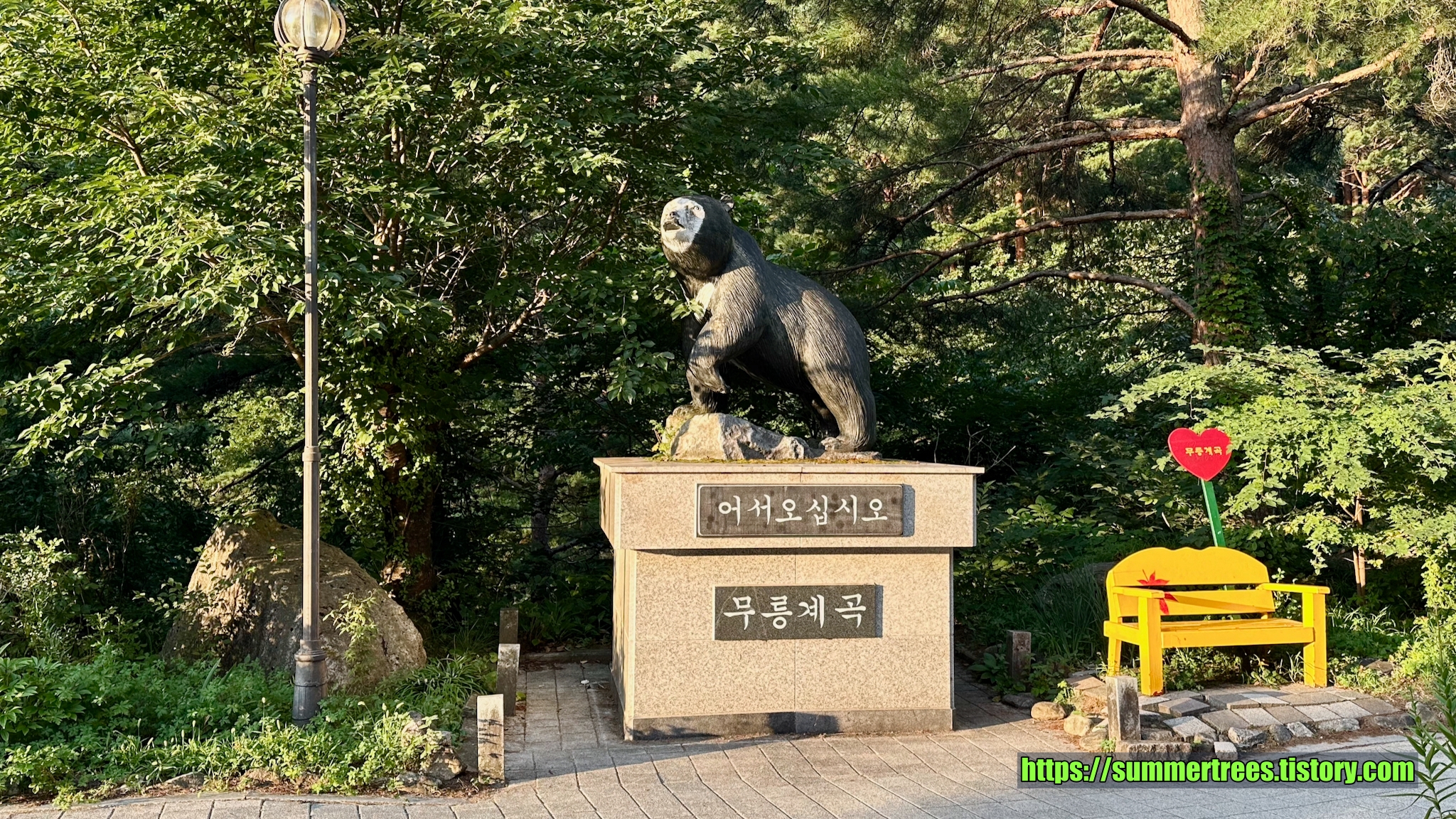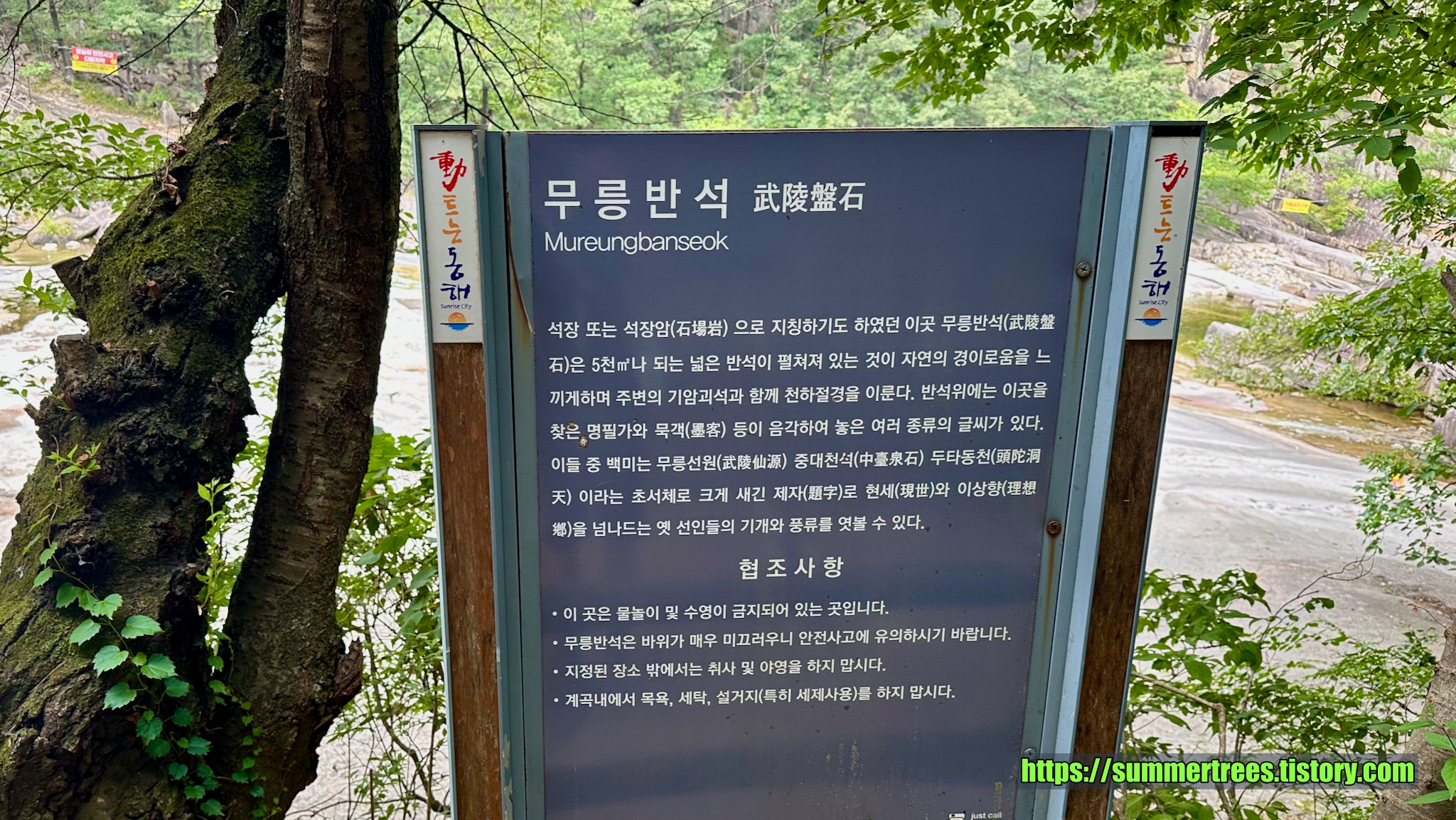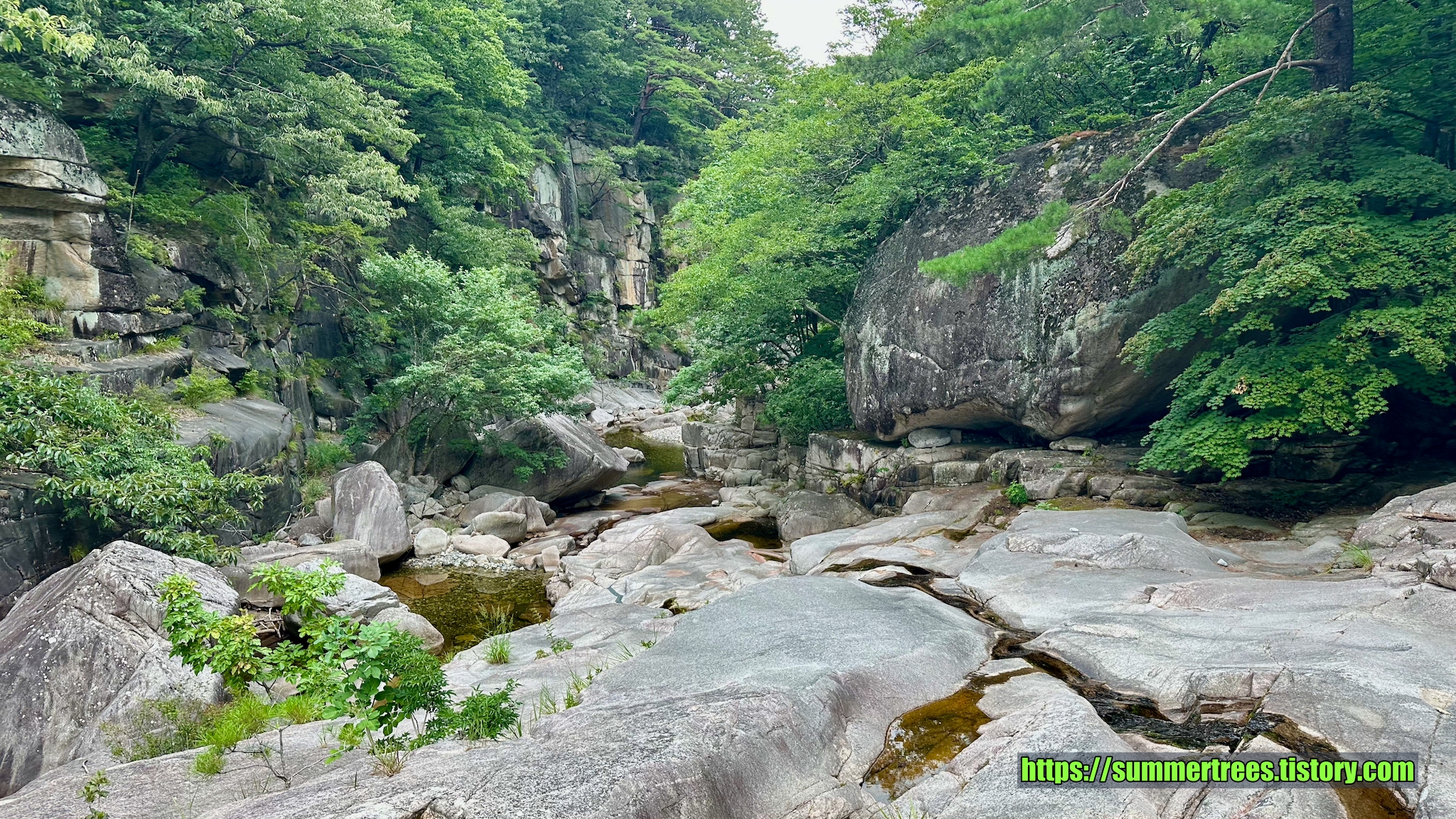 사람들이 피크닉 짐을 싸서 많이 들어오는데, 여기서 시간을 보내지 싶다. 계곡을 즐기기 좋다.