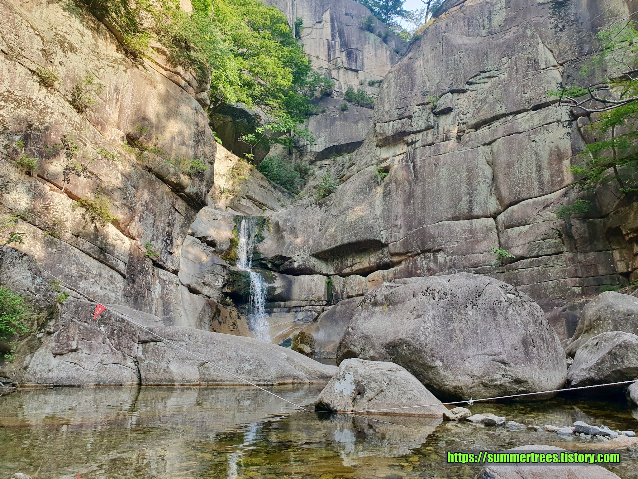 주차장에서 꽤 올라간 곳의 계곡이라 사람들이 피서를 즐기러 오기엔 힘들어 보였다.