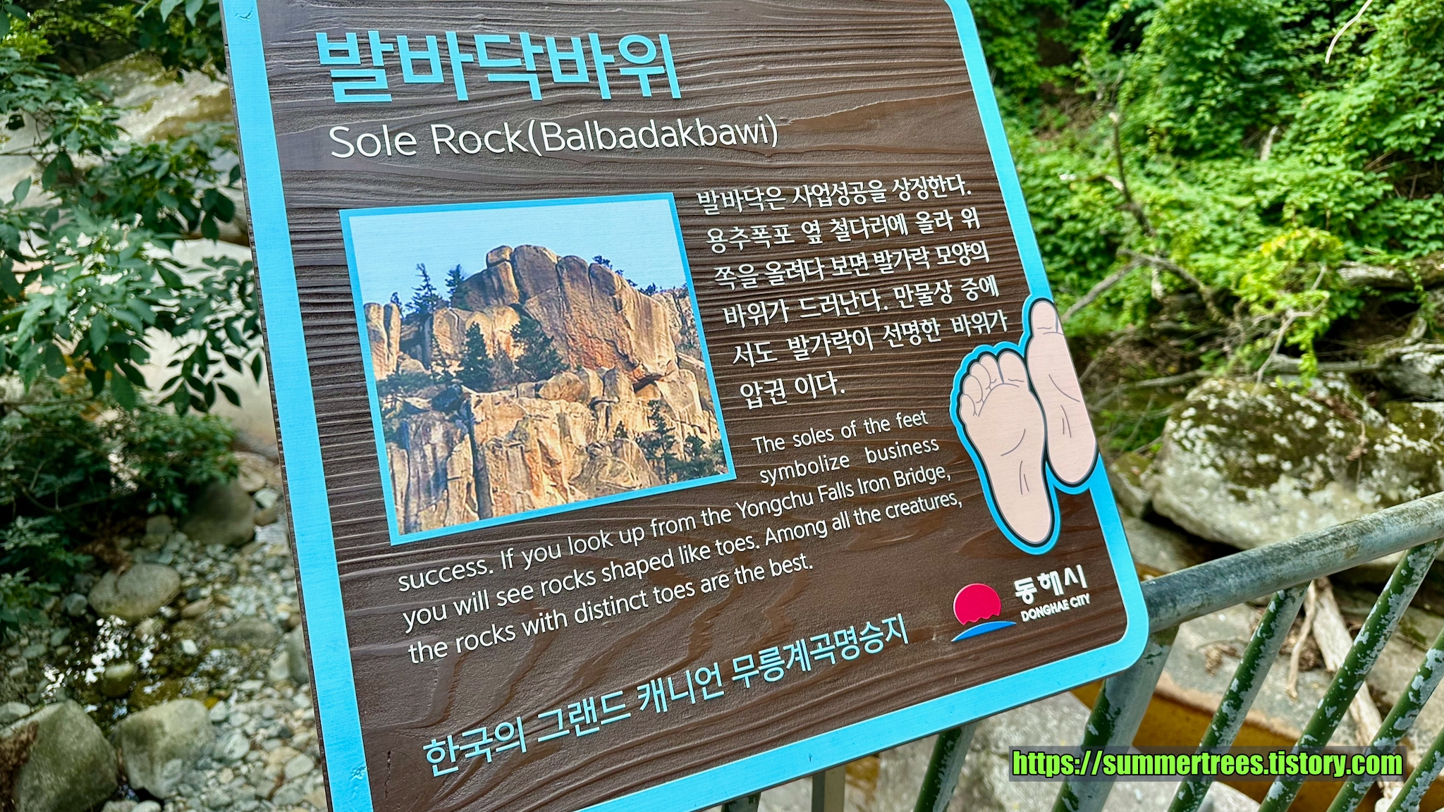 폭포의 맞은 편을 바라보면 보이는 바위. 정말로 발바닥을 닮았다.