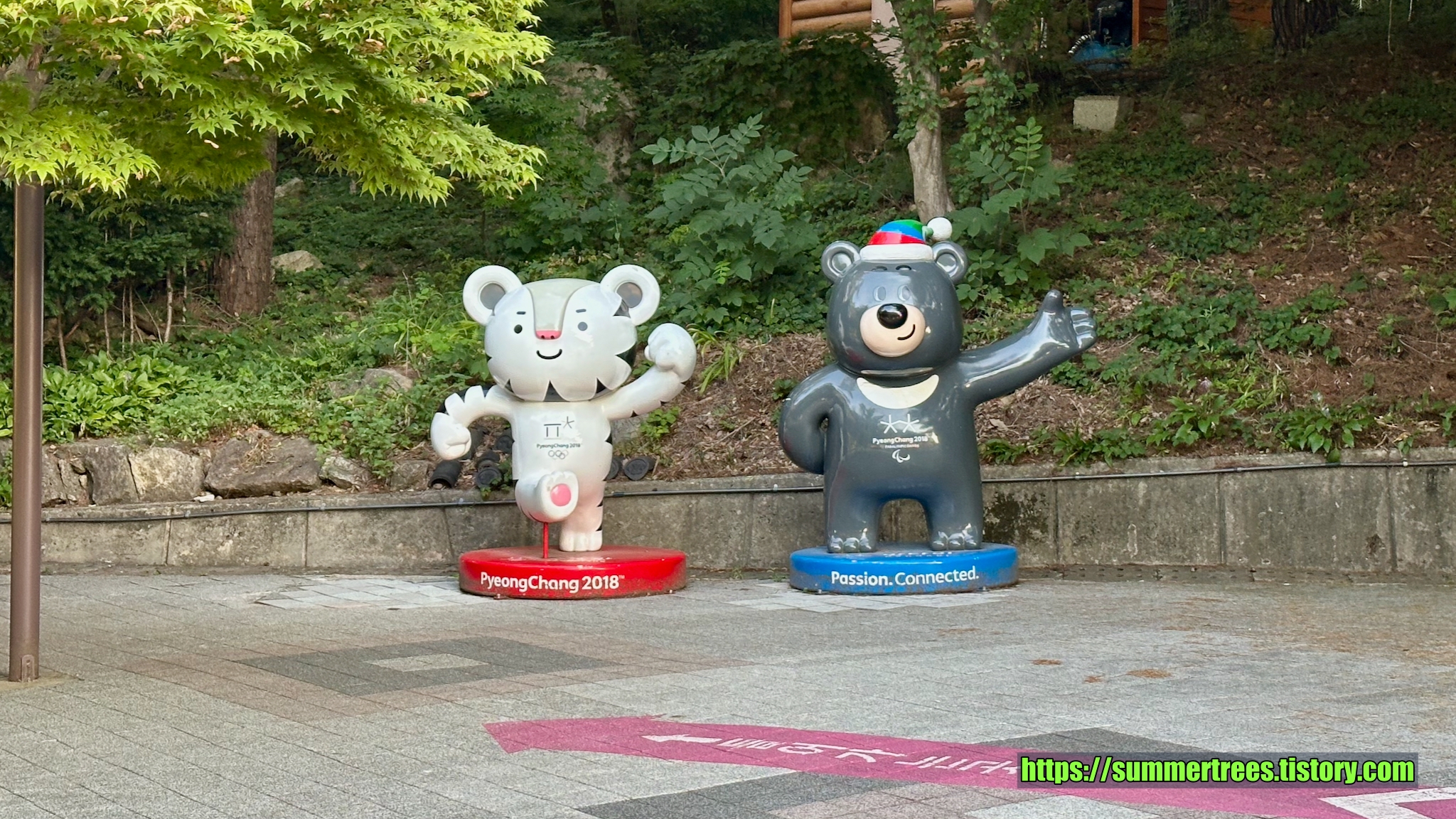 입구에서 귀여운 인형들이 맞이한다. 아래에서도 두타산 베틀바위가 보인다.
