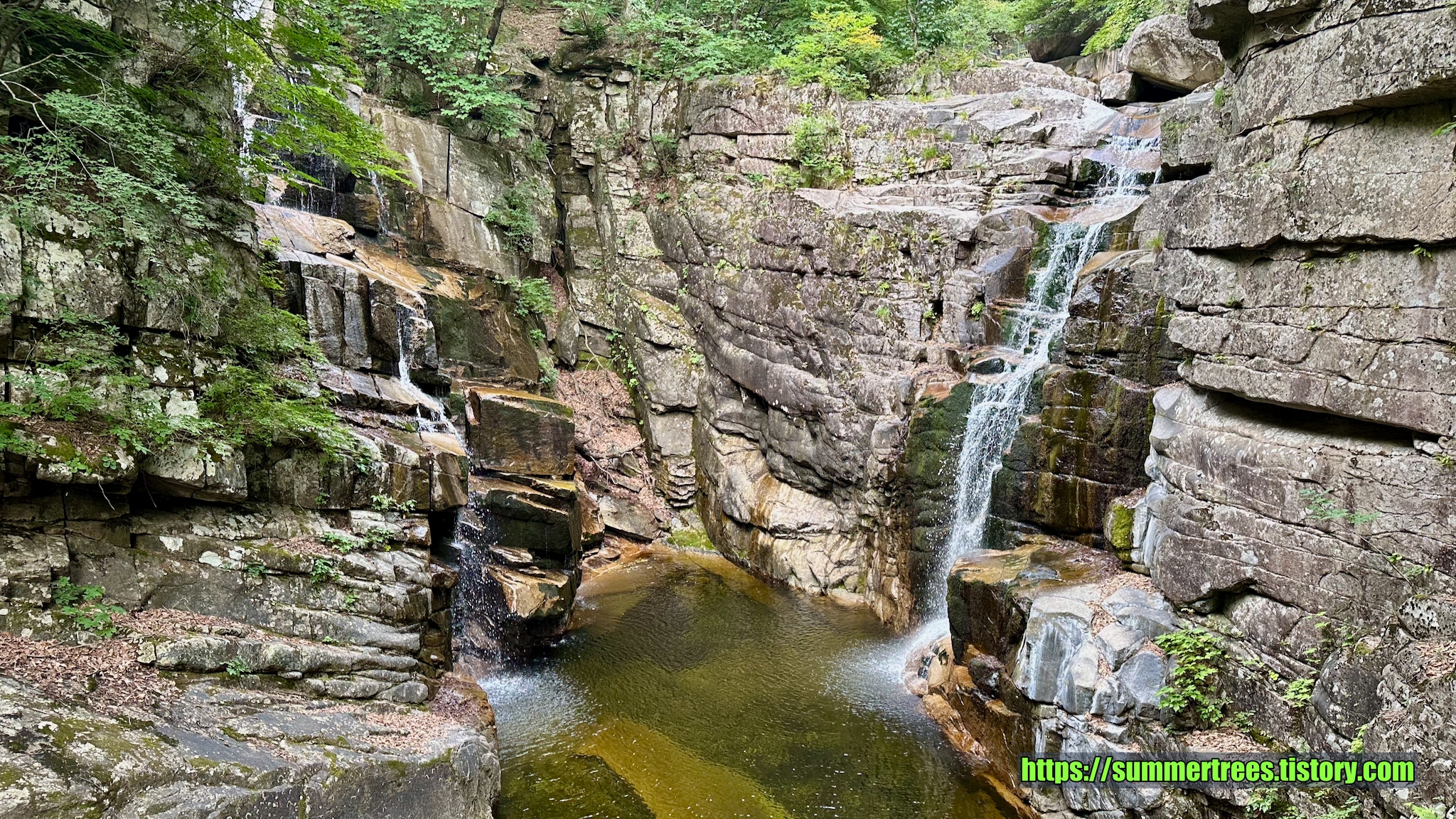 말라버린 관음폭포 이후 첫번째로 보여지는 폭포. 두 물줄기가 멋지다.