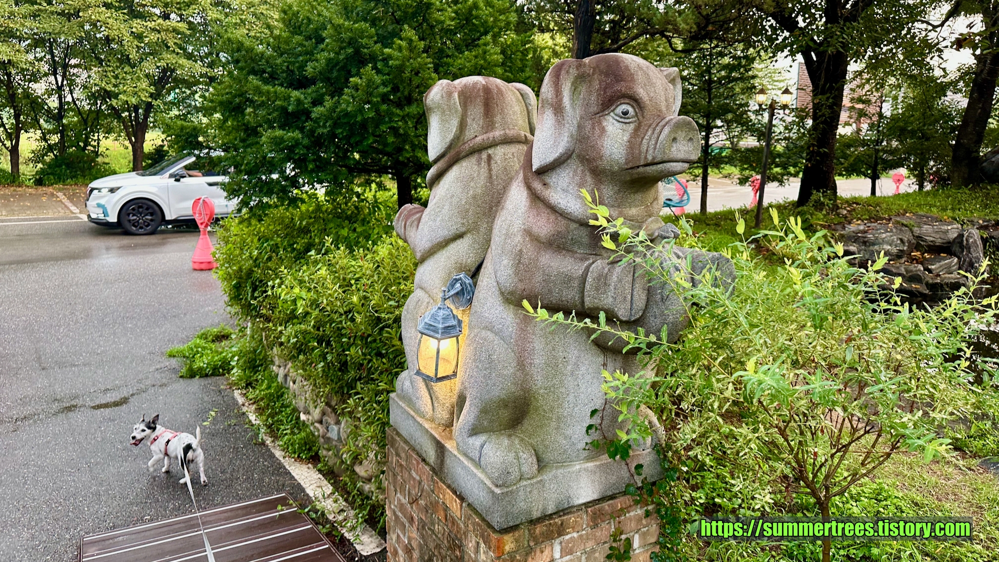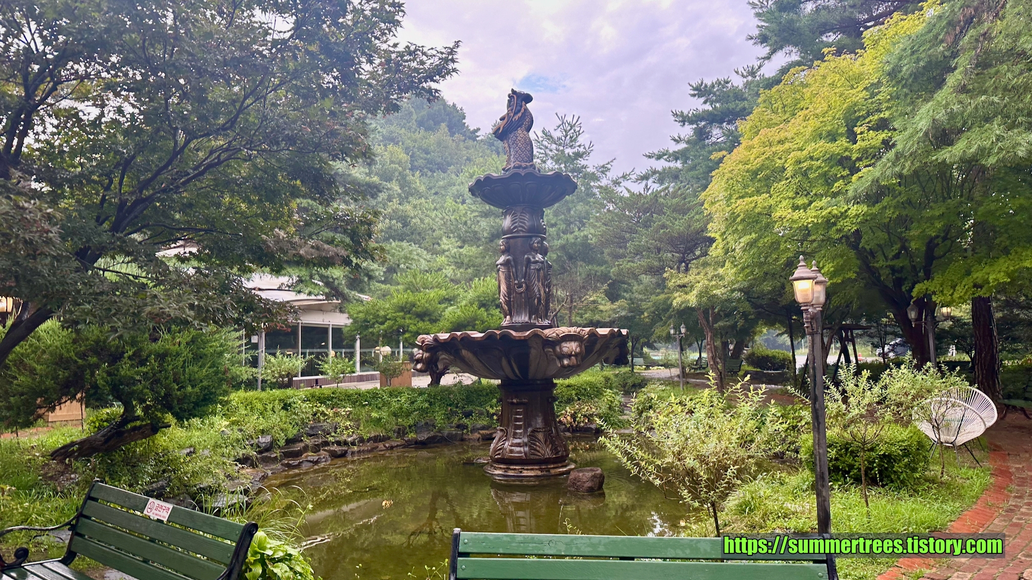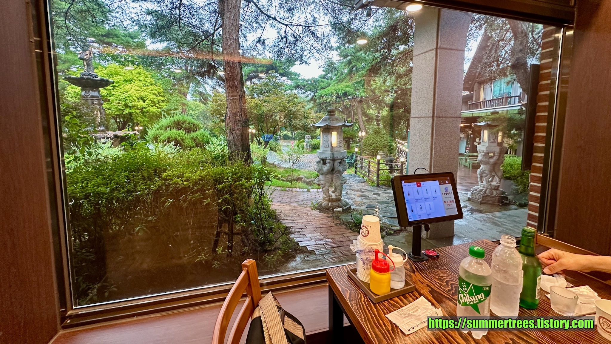 널직한 주차장에 차를 대고 입구를 들어서면 아담한 정원이 멋지다. 정원의 연못에 커다란 탑이 있는데, 이것 때문에 탑이란 이름이 들어간 듯 보였다.