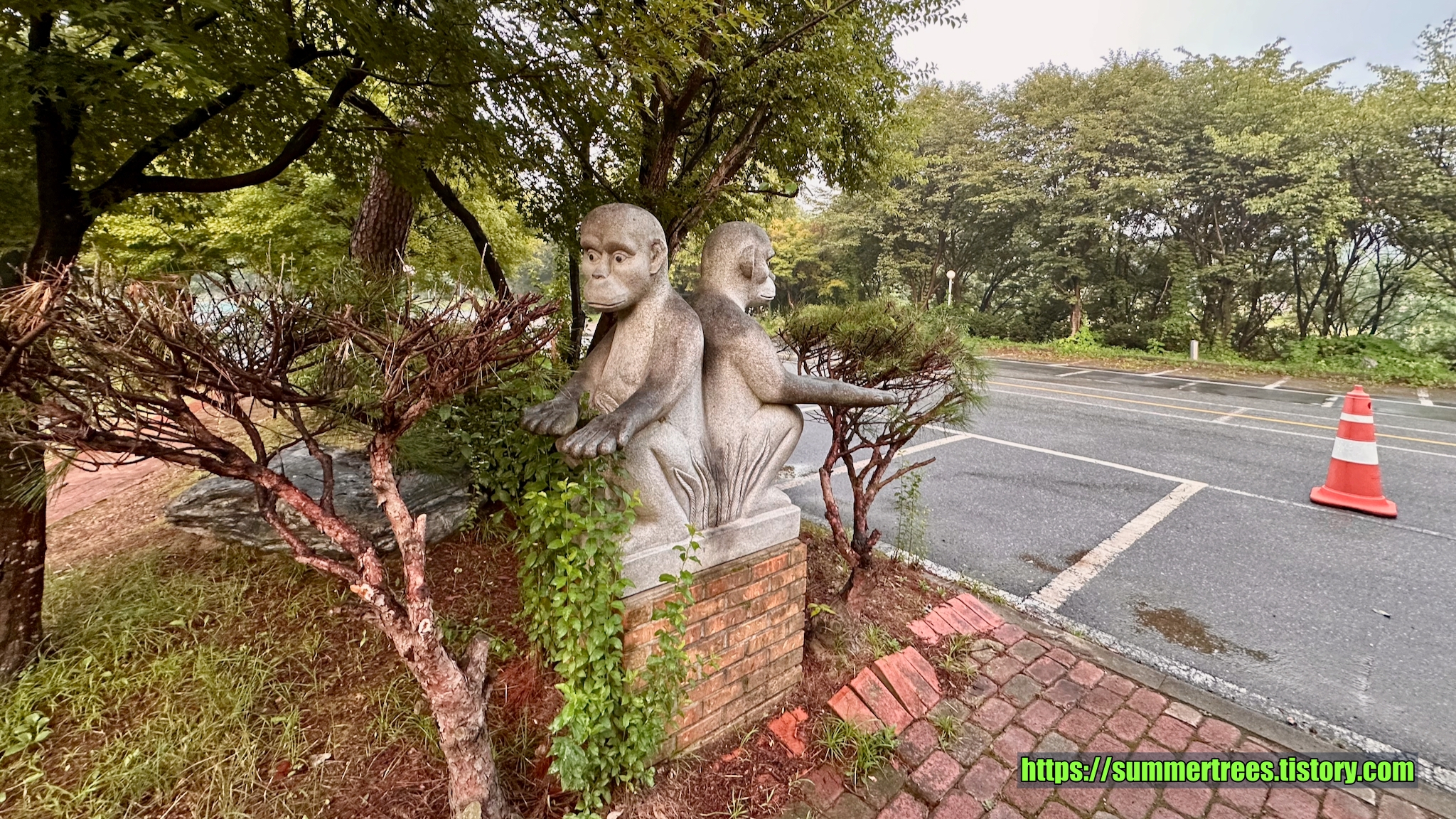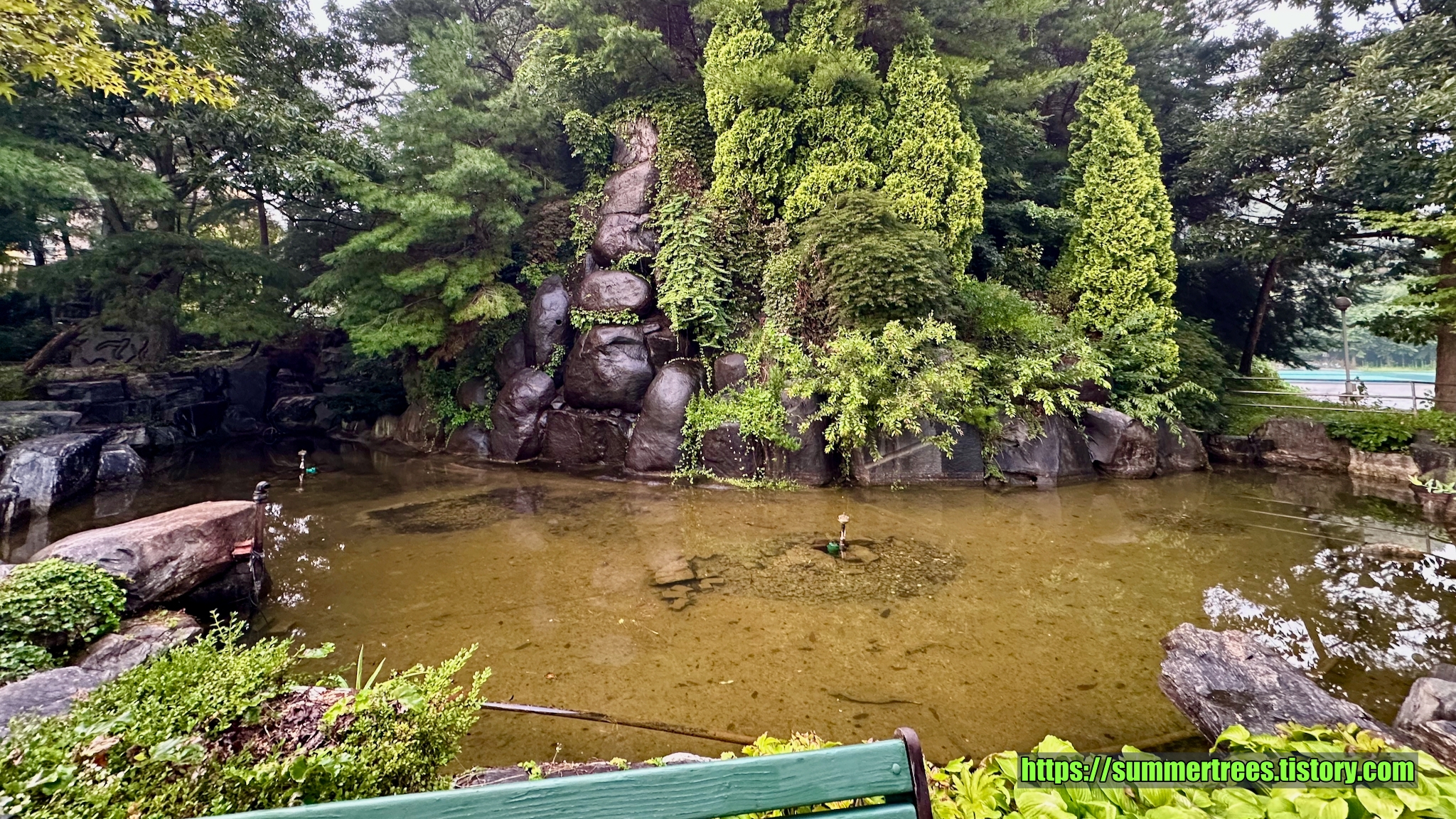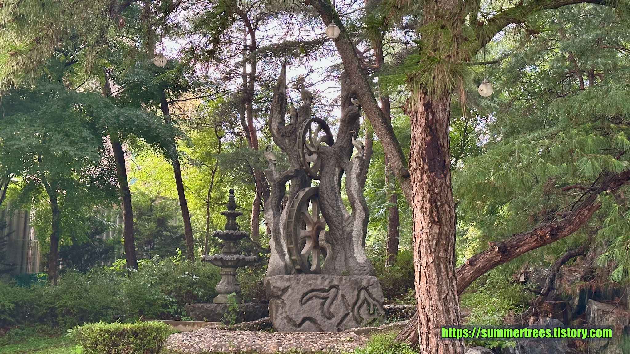 널직한 주차장에 차를 대고 입구를 들어서면 아담한 정원이 멋지다. 정원의 연못에 커다란 탑이 있는데, 이것 때문에 탑이란 이름이 들어간 듯 보였다.