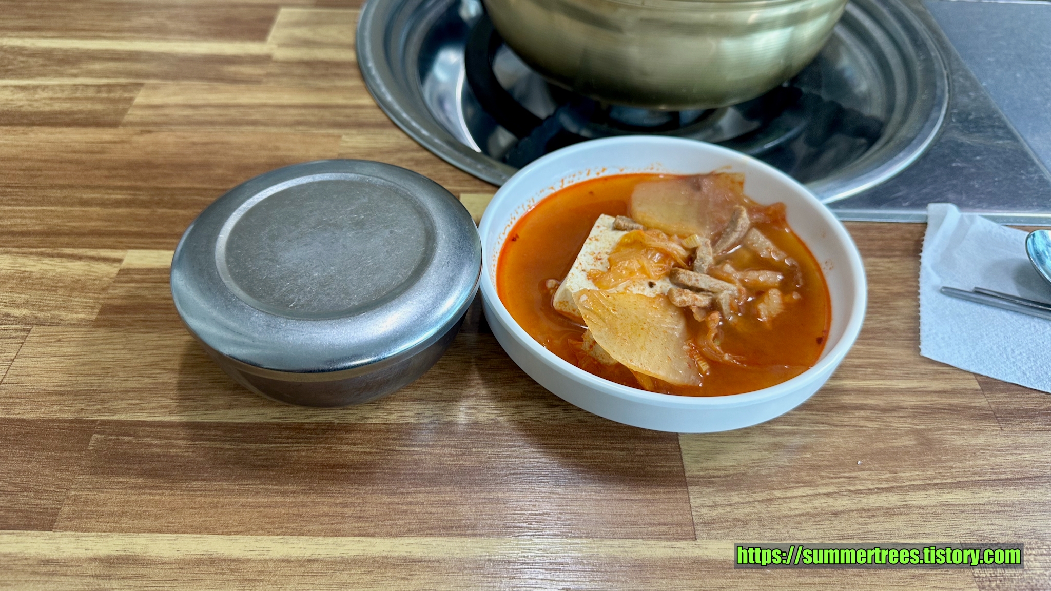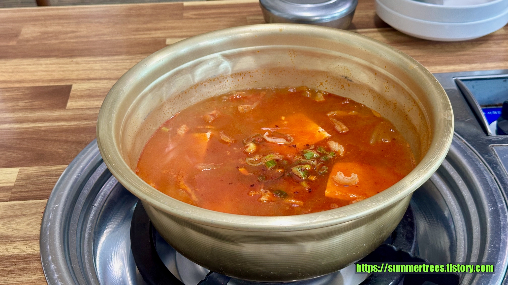 너무 과하지 않은 양념의 찌개를 좋아하는 나에겐 딱 맞는 김치찌개다.