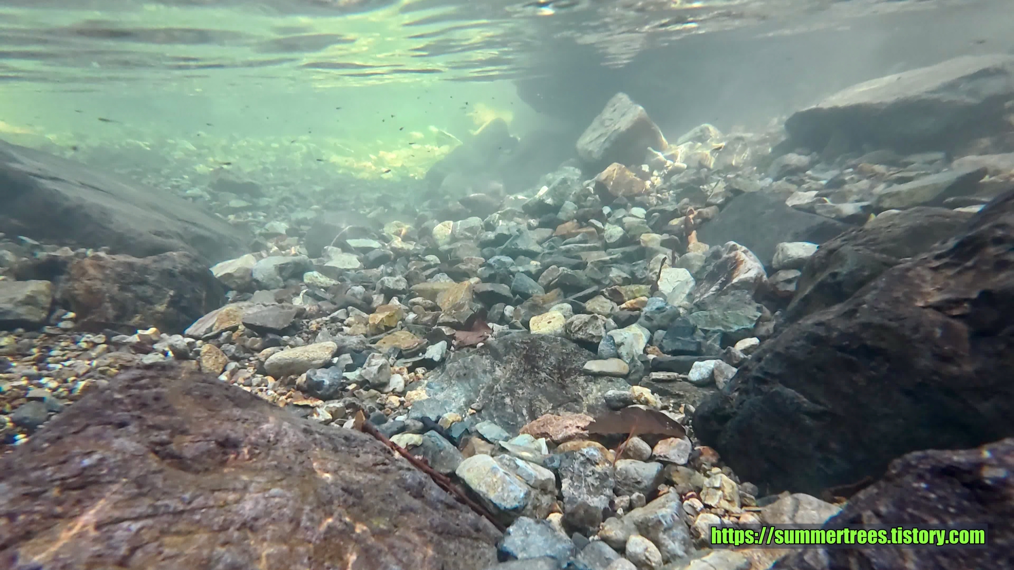 계곡물 속엔 작은 물고기가 산다. 겨울 가뭄을 어떻게 견디고 살아있는지 신기할 따름이다.