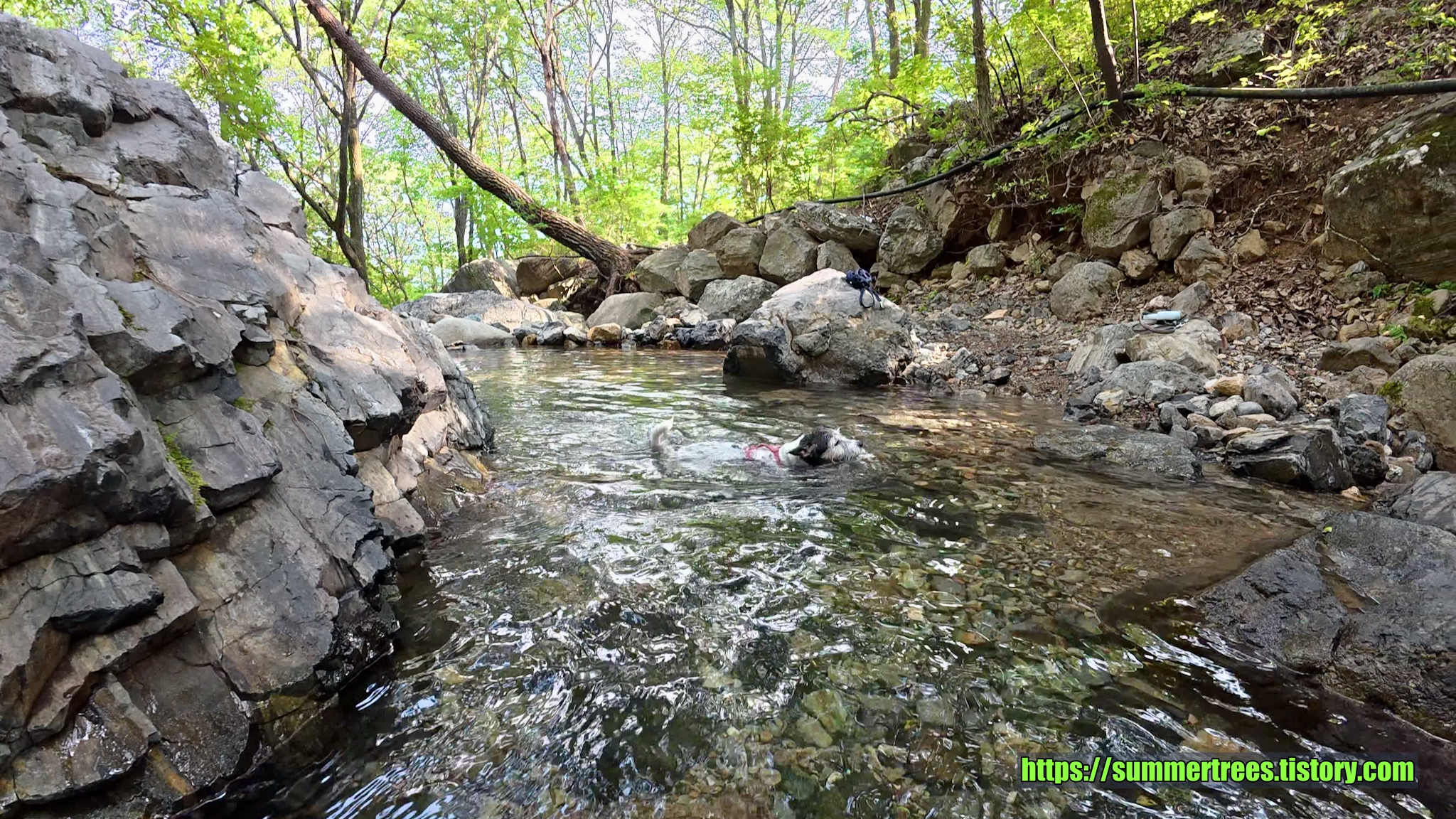 사람들이 많은 곳은 마야와 같이 가지 못하니 우리만 있을 수 있는 포인트를 찾는데, 여기가 가장 좋다. 게다가 물도 가장 깨끗하다.