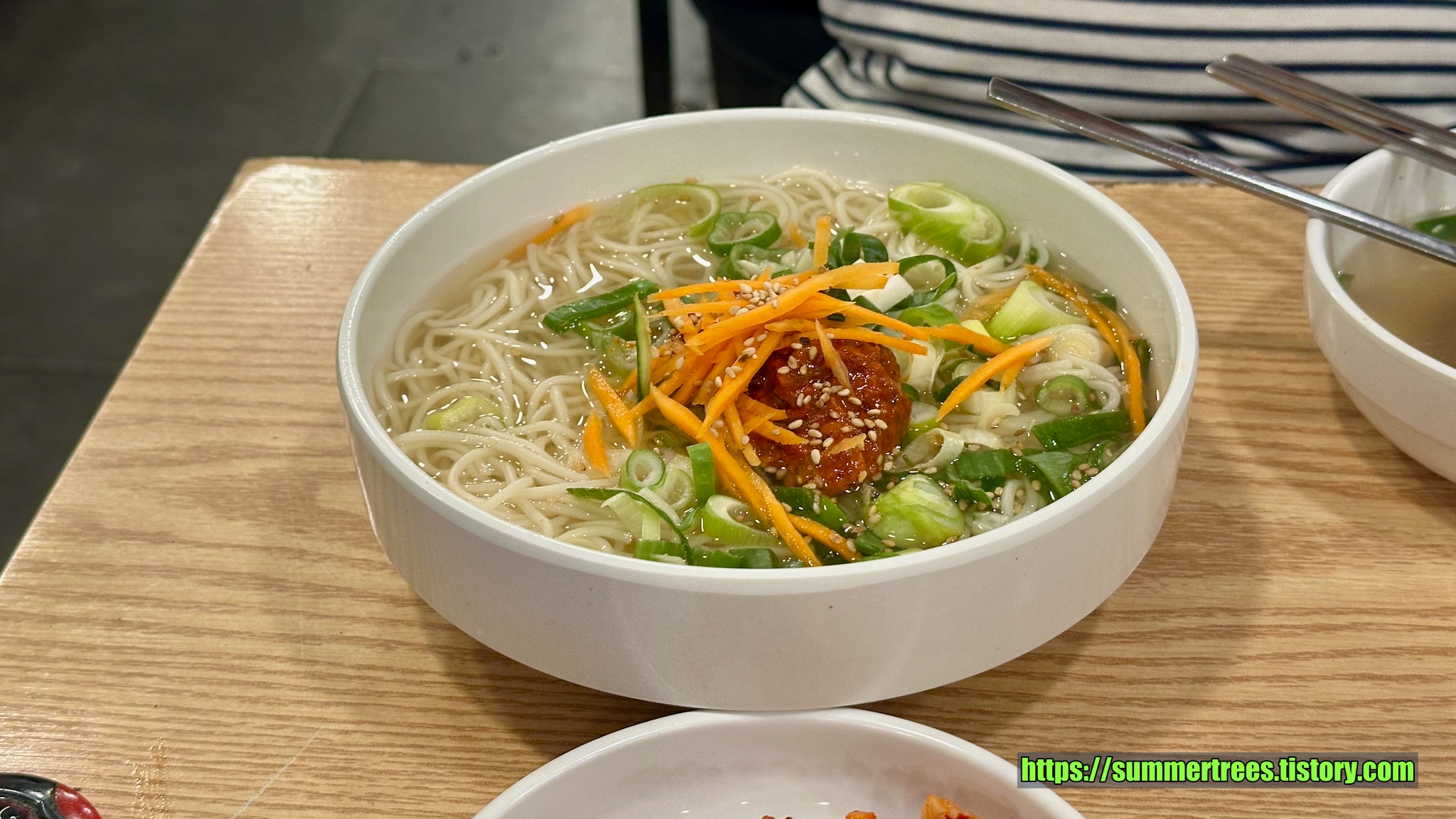 잔치국수는 뭐라 표현하기 오묘한 맛이었다. 익숙하지 않아 즐기지는 못했다. 서울이라 그런가? 부산사람인 우리는 당연히 멸치육수를 기대하지만 이 국수는 그렇지 않다.